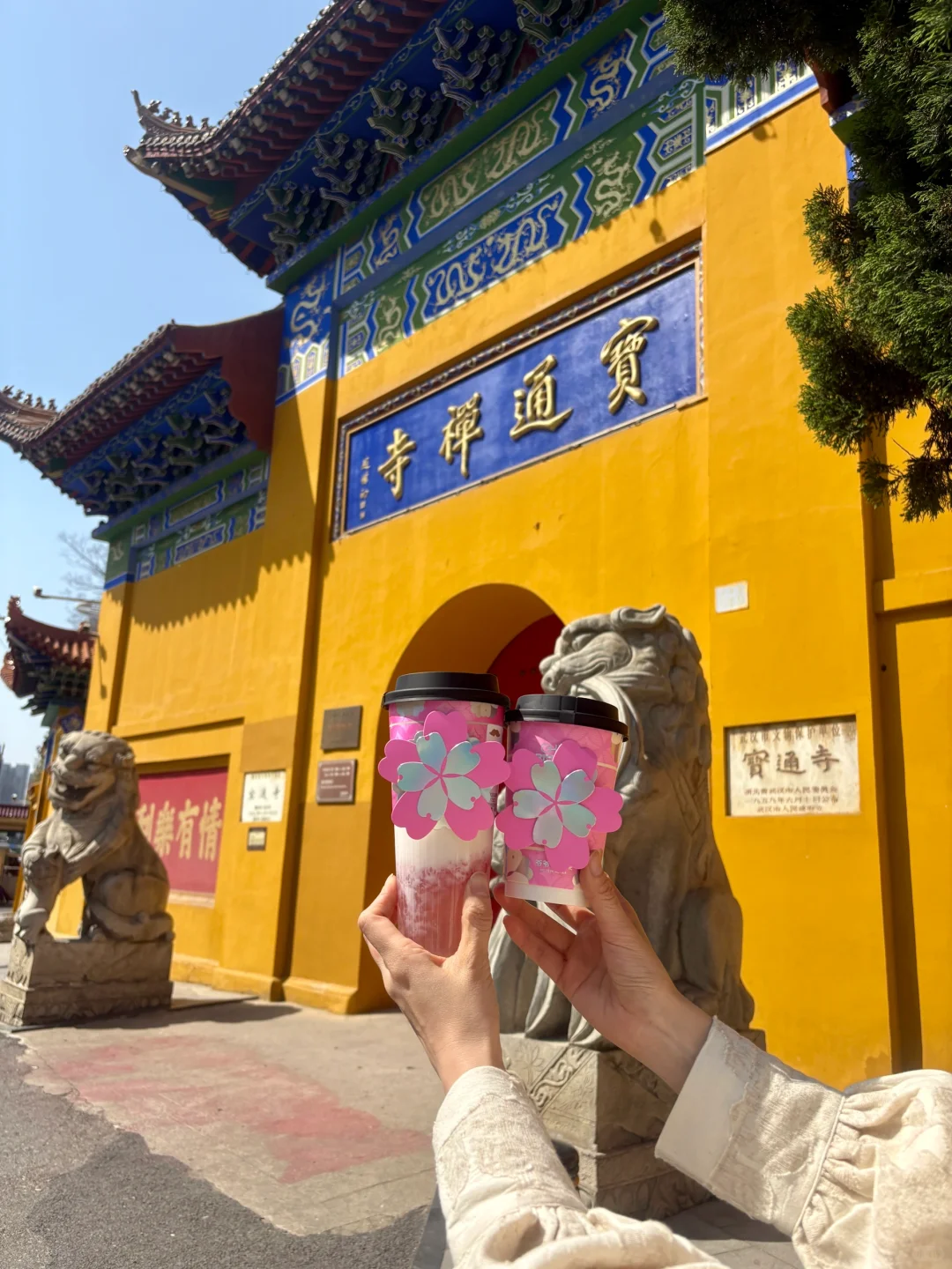 樱花季的武汉太美啦!🌸樱花开满全城,分享两处小众赏樱地,充满禅意的山寺樱花 1️⃣龙华寺樱花 比较小众没啥人,可以拍到寺庙和樱花同框,黄墙搭配樱花和光影很美 现在开了一些,马上要进入盛花期啦 2️⃣宝通寺樱花 宝通寺对面梦时代的粉色樱花开的真好,有十几颗,楼上可以拍宝通寺全景 看完樱花🌸带上爷爷不泡茶【春回樱花作】去宝通寺拍照祈福,粉嫩嫩的颜色贼出片 爷爷不泡茶太会了!樱花周边福袋、城市限定冰箱贴、手链尊嘟好好看 樱花冰箱贴在阳光折射下闪闪发光,樱花福袋为爱情、招财带来美好寓意,仪式感满满 🌸春回樱花吸吸冻 樱花与蜜桃碰撞,搭配樱花吸吸冻层次丰富,一口坠入花海,把春天喝进肚 🌸春回樱花作 紫甘蓝汁晕染春意,一口白兰玉露混合着关山樱花,一整个春心荡漾