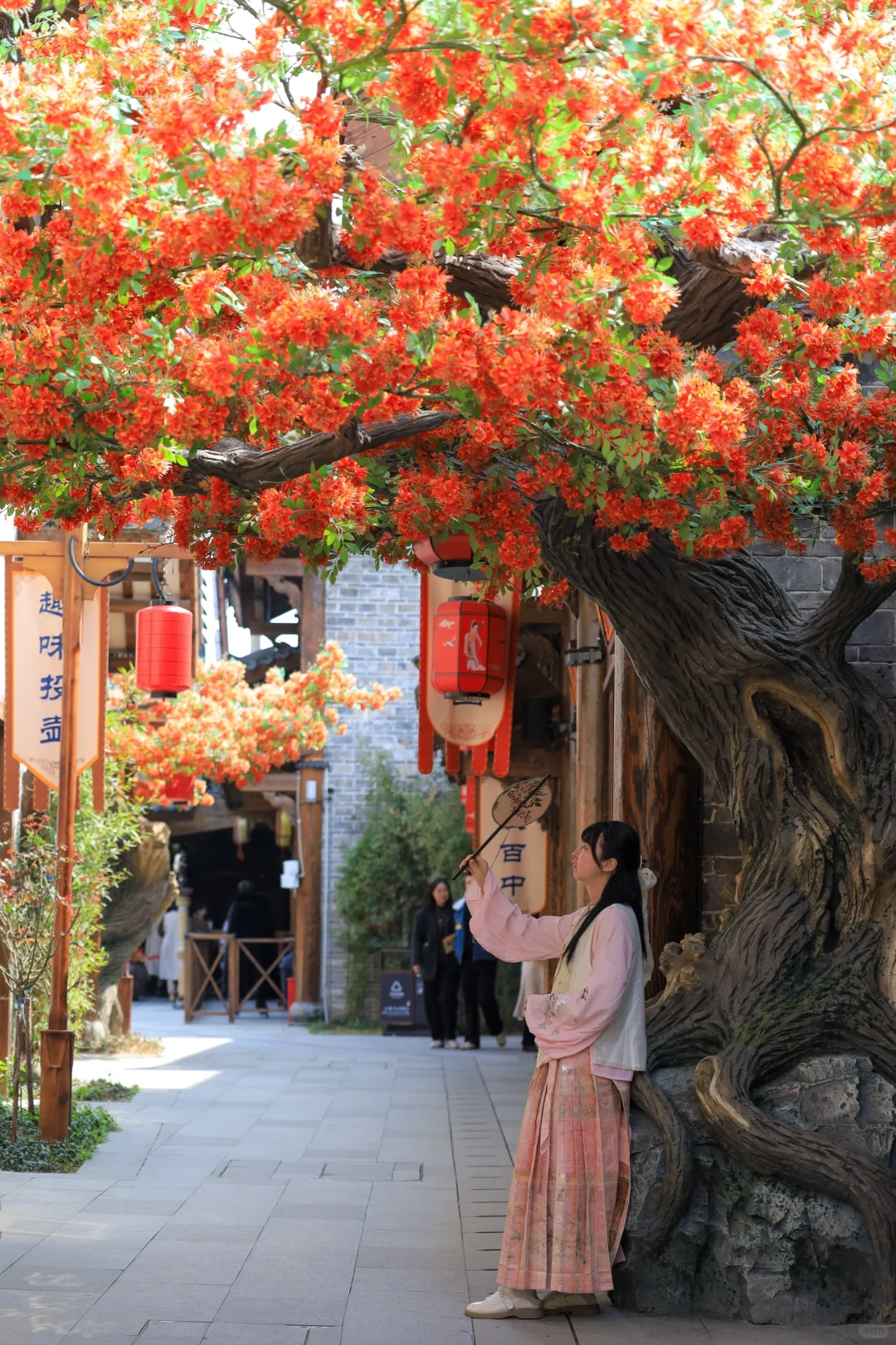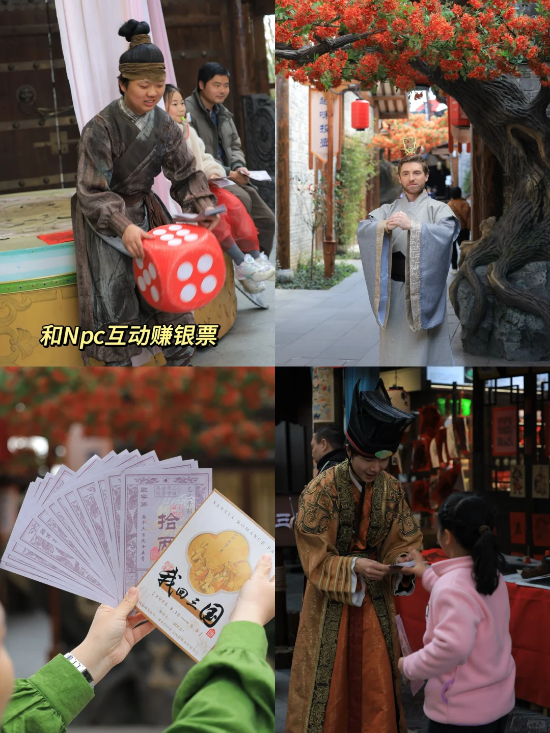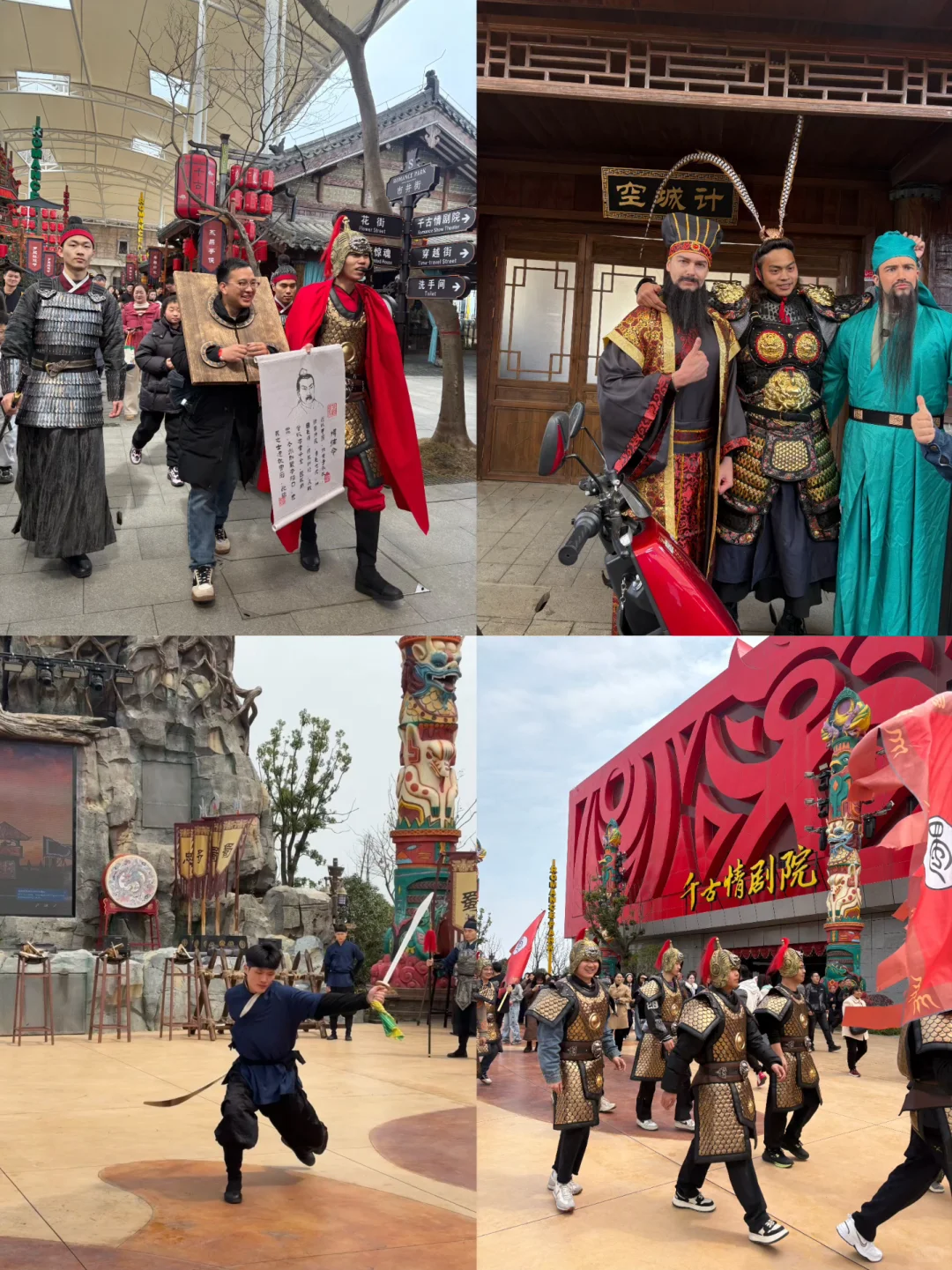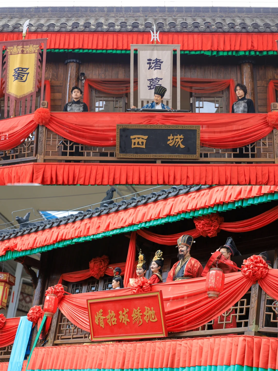 3️⃣进入景区先参观花街、市井街,接着去绣楼广场看诸葛亮唱空城计和抛绣球招婿,然后经过穿越街、三国街到千古情广场有点兵大典和三国巡游