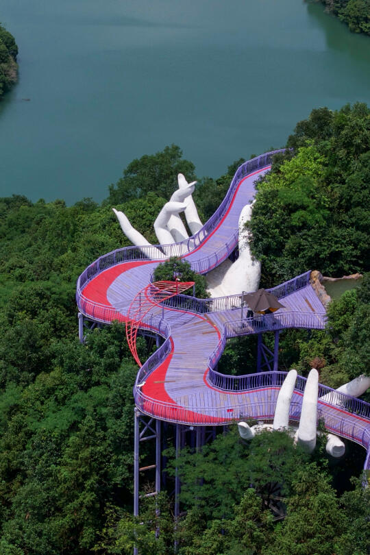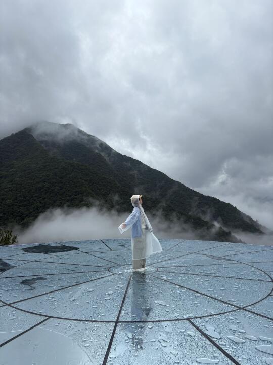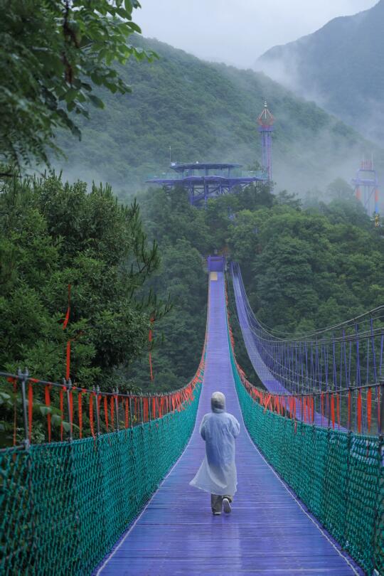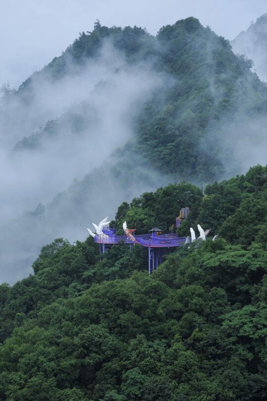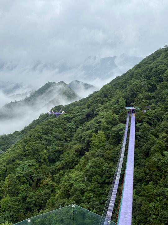 纤纤玉手托起紫色栈道,雨后山间云雾缭绕氛围感拉满,拍照分分钟刷爆朋友圈