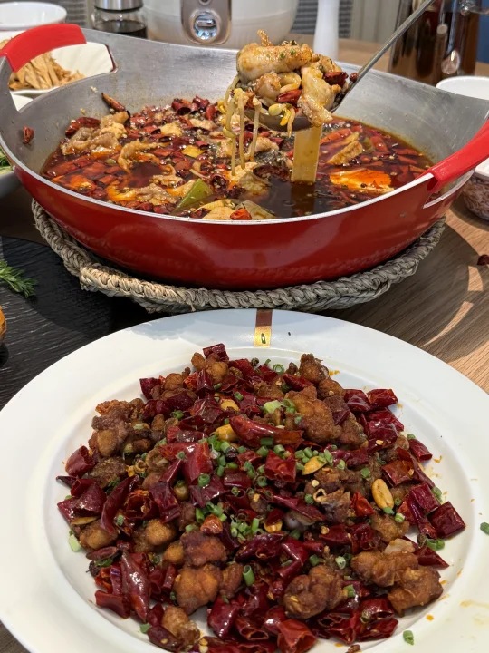 悦心小馆,和小悦澋、悦澋烤鸭是一家, 以川菜为主,水煮鱼是招牌! 工作日的中午,座无虚席…… · 进门就是新鲜明艳的食材, 大大方方的展示! · 🐟新味道水煮鱼🌶️ 店里的招牌,好大一盆, 端上来就已经馋了, 鱼肉紧实,微微麻,香而不辣! 🧀芝士河滩土豆🥔 姐妹口中的今日zui佳! 土豆沙软,口感绵密, 连带芝士一勺子下去!满口香甜~~ 颜值出众!我们真的超喜欢! · 这个小馆的味道, 真的很适合家庭聚餐和姐妹小聚~ ·
