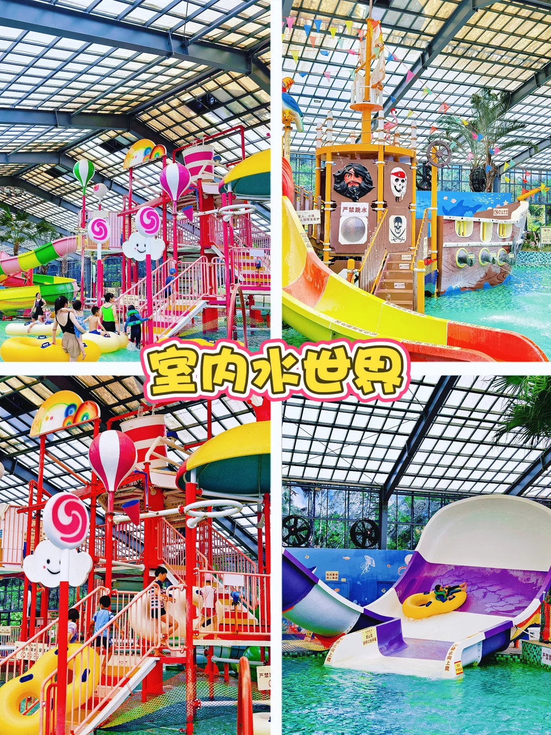 室内室外都有水上乐园,室内的常年恒温38度 ,冬天来玩也不怕冷。大喇叭、彩虹滑道,刺激得让人尖叫连连。还有小朋友专属的儿童区,小滑梯、泡泡池,孩子们玩得乐不思蜀。室外水上乐园夏天开放,造浪池仿佛一秒置身海边,尽情享受玩水的快乐!