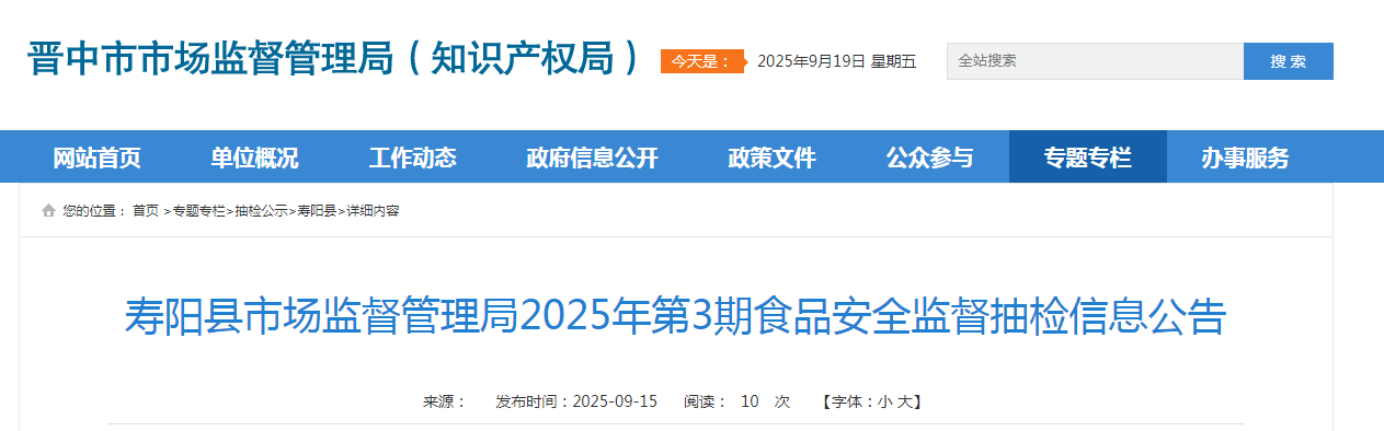 山西省寿阳县市场监督管理局2025年第3期食品安全监督抽检信息公告