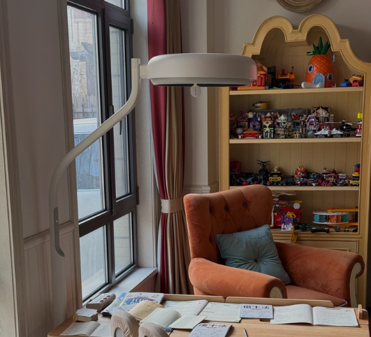这款灯采用科学全光谱配方,RG0无蓝光、无可视频闪,显色指数Ra≥95;国AA级高标准照度,光照覆盖20㎡以内空间无压力;支持亮度+色温无极调节(3000K—5000K),适配学习、休闲、睡前等不同场景;采用上下双漫射光设计,减少眩光、杜绝暗角,光线柔和度拉满。适合二胎家庭、追求智能便捷用光,需要全屋移动照明的用户。