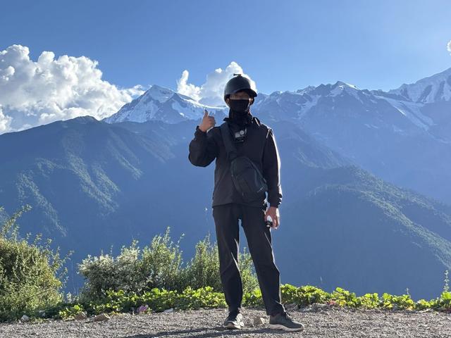 今年暑假,唐尚珺骑行去新疆途中,经过梅里雪山时留影受访者供图