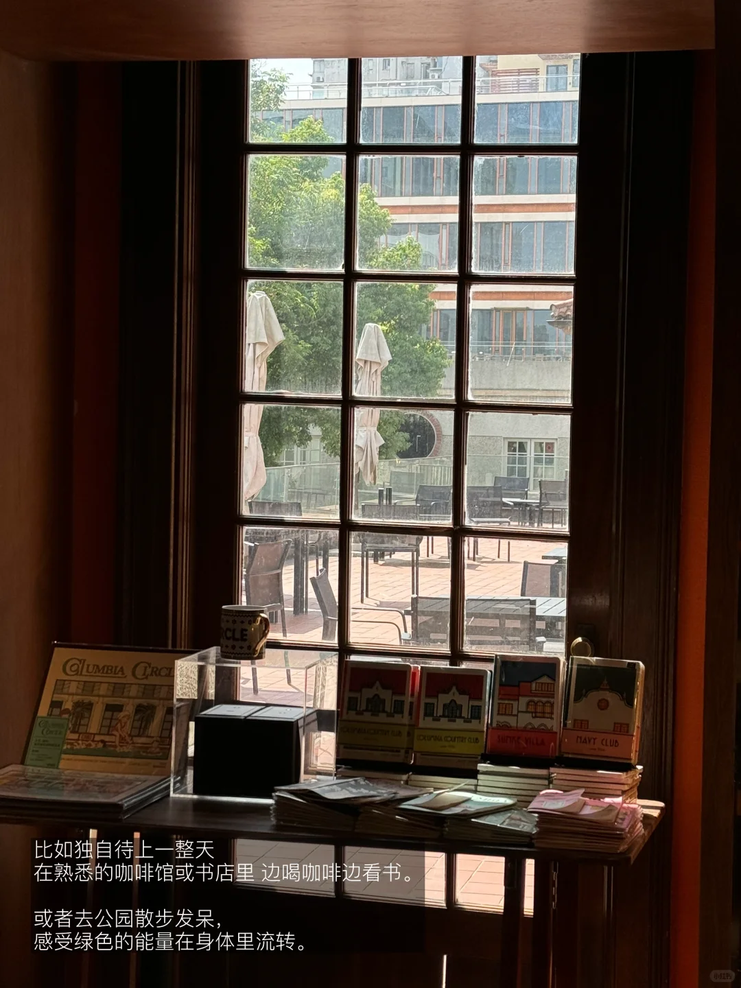 在熟悉的咖啡馆或书店里 边喝咖啡边看书。