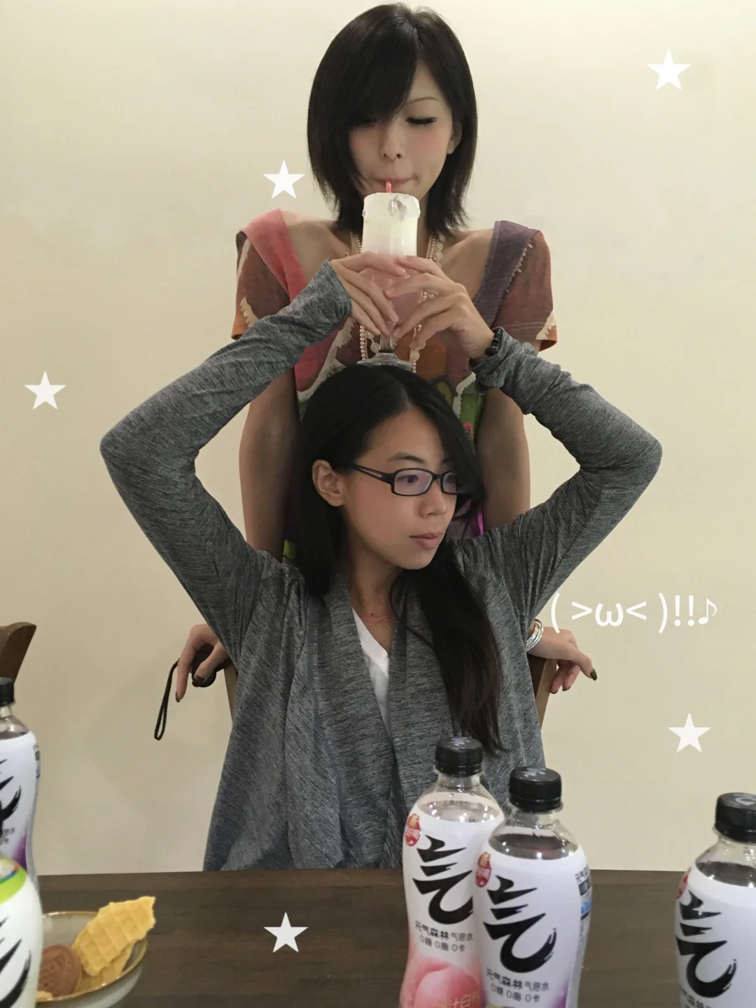 1 .满杯冰块加上味全梅梅桃桃 2.加上添加利金酒 3.元气森林白桃气泡水补满 4.加上奶油顶装饰一下就完美啦~