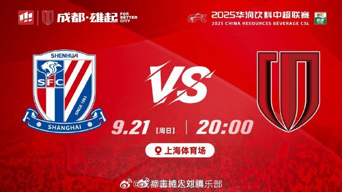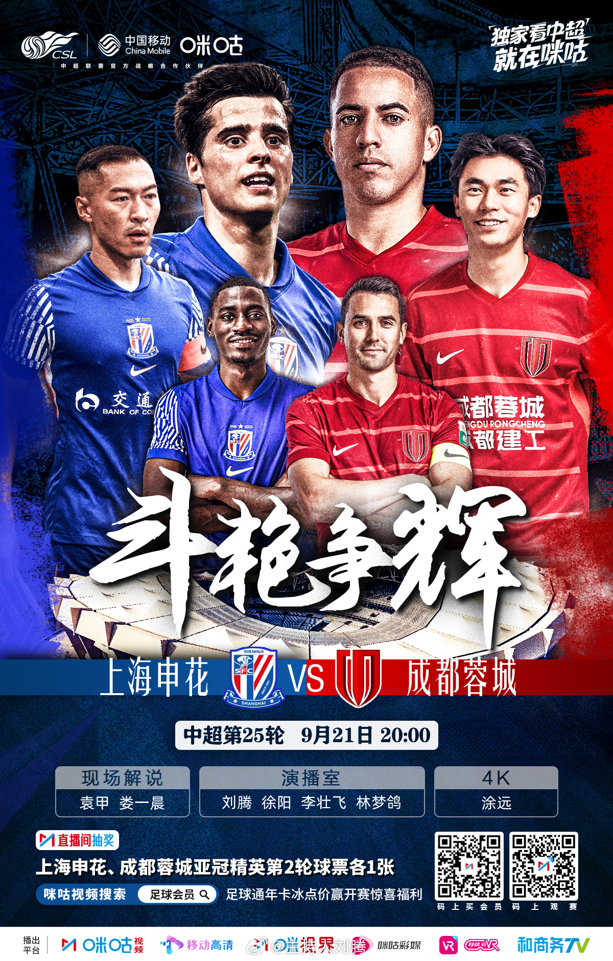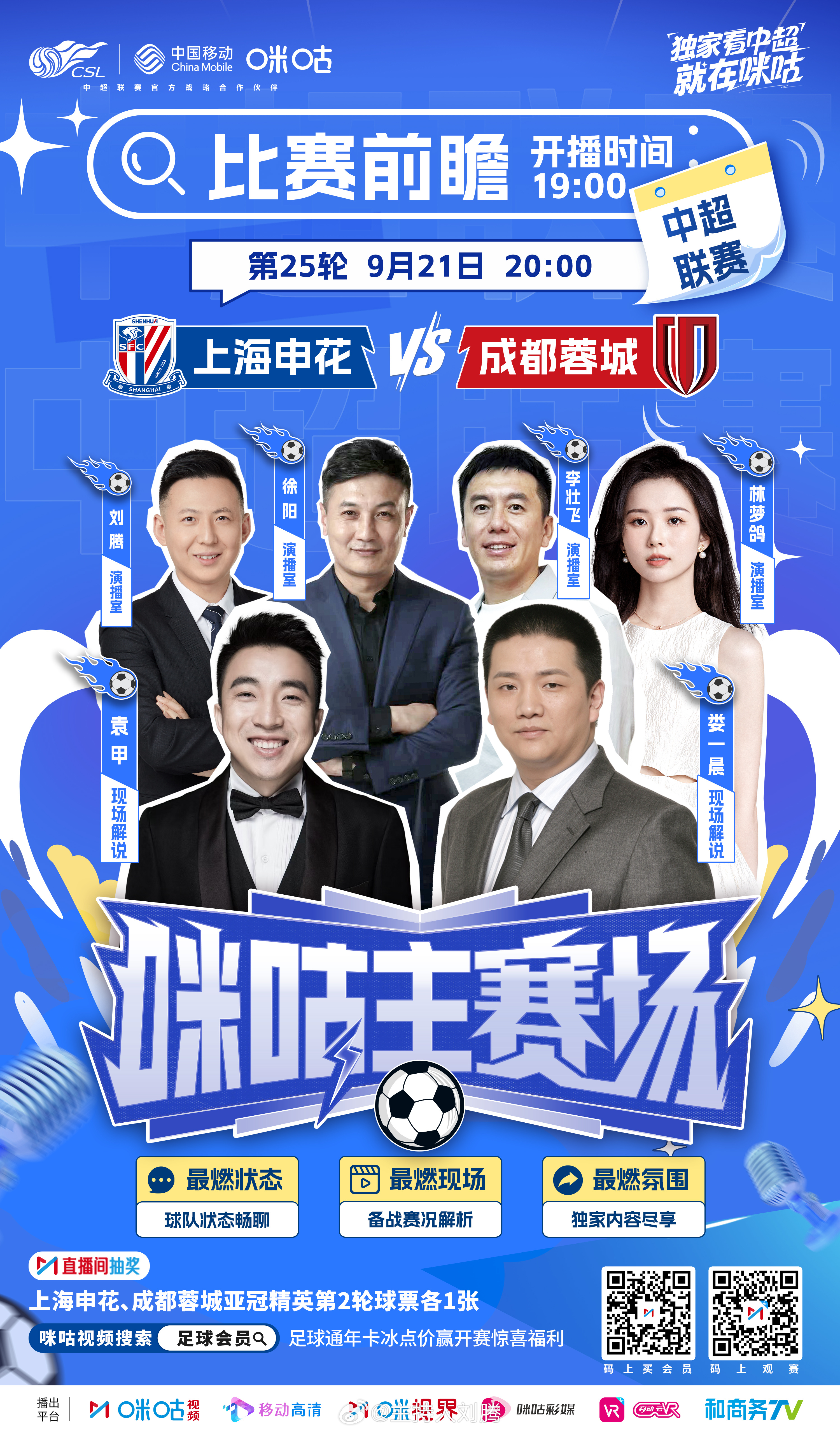 上海申花vs成都蓉城 19:00,搭档李壮飞解说2025赛季中超联赛第25轮:上