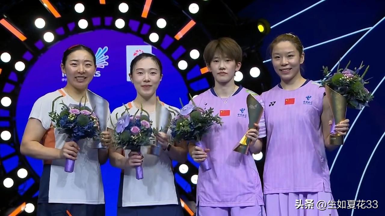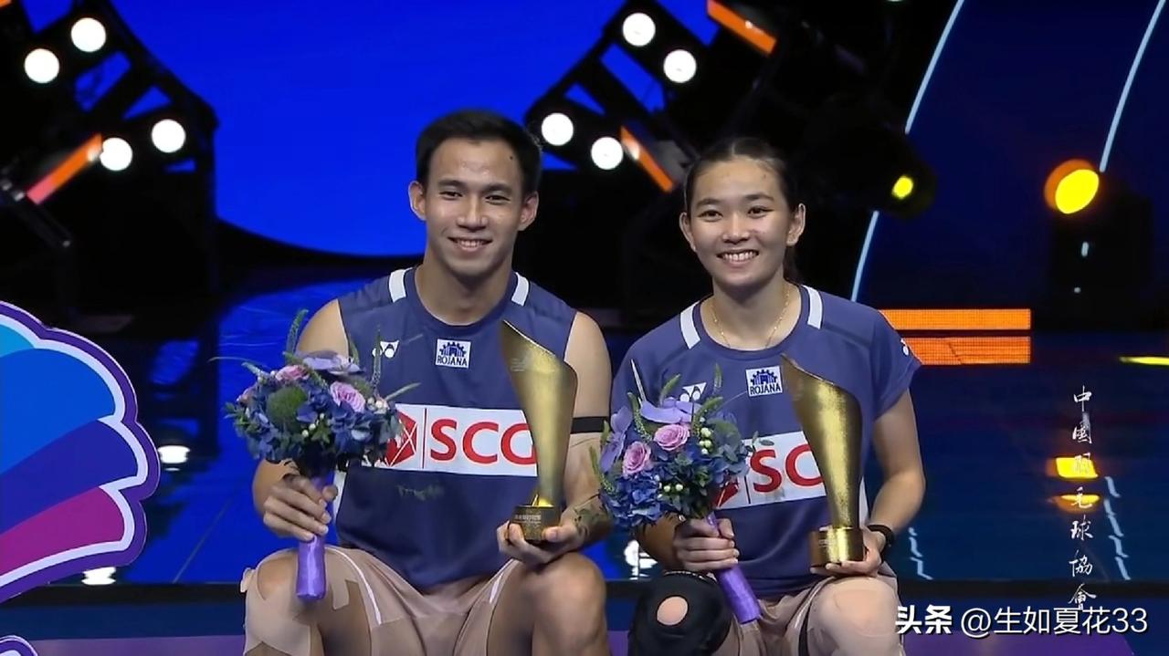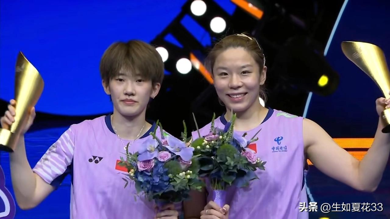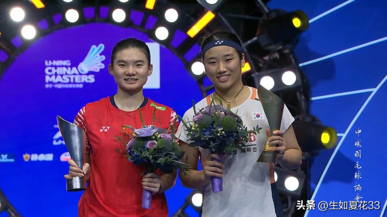 21日决赛战报2025年中国羽毛球大师赛 2025年中国羽毛球大师赛,国羽三项进入决赛,最终取得2金1银的成绩。金牌得主由中国(男单、女双)、韩国(女单、男双)、泰国(混双)三个国家的包揽。详细决赛成绩如下: 1、混双 冠军🥇:德差波/苏皮萨拉(泰国) 亚军🥈:陈堂杰/杜颐沩(马来西亚) 比分:21-8, 21-17 2、女双 冠军🥇:张姝贤/贾一凡(中国) 亚军🥈:金慧贞/孔熙容(韩国) 比分:21-19 ,16-21, 21-13 3、男单 冠军🥇:翁泓阳(中国) 亚军🥈:林俊易(中国台北) 比分:21-11, 21-15 4、女单 冠军🥇:安洗莹(韩国) 亚军🥈:韩悦(中国) 比分:21-11, 21-3 5、男双 冠军🥇:徐承宰/金元浩(韩国) 亚军🥈:陈堂杰/杜颐沩(马来西亚) 比分:21-19, 21-15