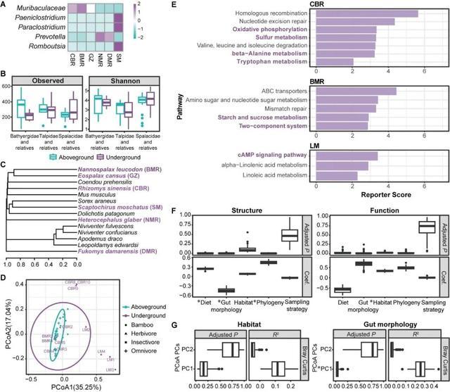 那么,地下哺乳动物是否也依赖肠道菌群的趋同演化来生存?还是主要靠自身基因组的变化?