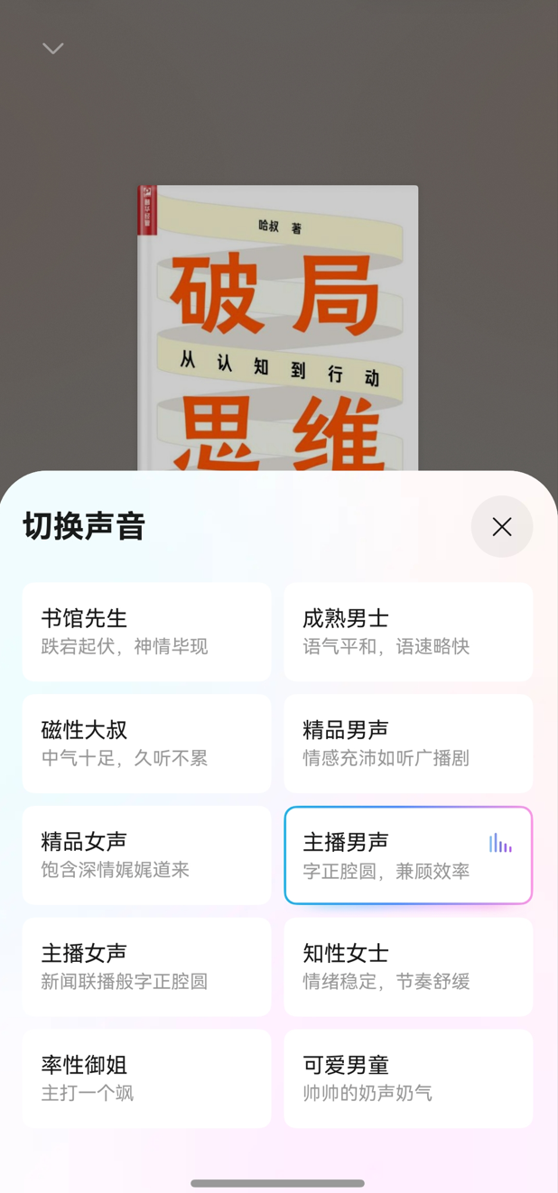 作为一个打工人,白天盯了一天屏幕,晚上回家眼睛早就累得不行了,实在不想再看小屏幕。于是,我打开华为阅读的听书功能,我特地选了个沉稳理性的“主播男声”,戴上耳机,一边做家务一边听。主播的声音字正腔圆、逻辑清晰,有真人感,把书里那些关于破局的方法讲得很清晰。这哪里是听书,分明是花一杯咖啡钱,请了个一对一的职场私教,在耳边给我开了个专属小课堂。现在,这本书我已经听完了大半,感觉整个人的思维方式都通透了不少。我开始学着不再为了努力而努力,而是先抬头看路,想清楚方向再发力。
