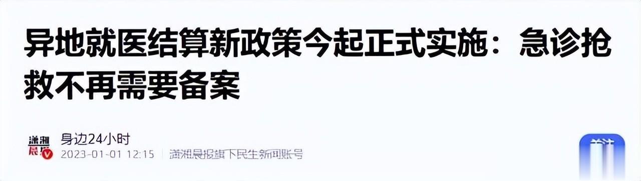身边24小时——异地就医结算新政策今起正式实施:急诊抢救不再需要备案 2023-01-01