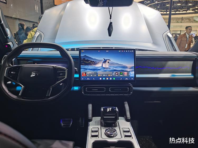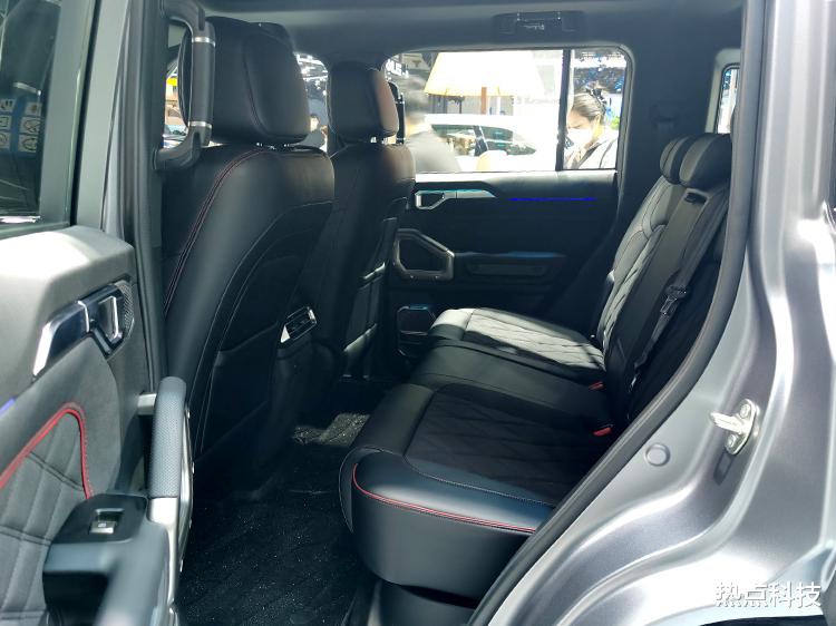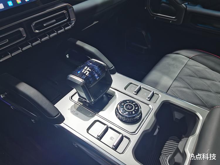 内部空间方面,这款车有着2800mm轴距,整车的空间非常宽敞。前排中岛和中控的物理按键相当多,在越野时就有更好的盲操性。驾驶旋钮上给到了非常多模式,适合不同的越野场景,并且也可以一键启动X越野模式,车子会根据地形自动适配对应模式。