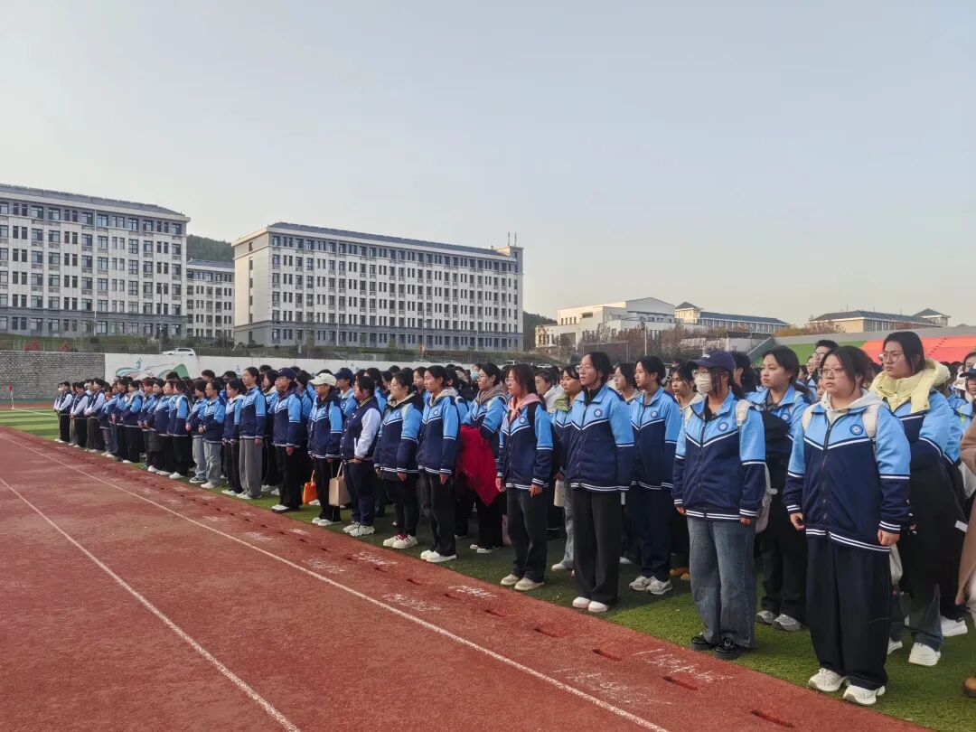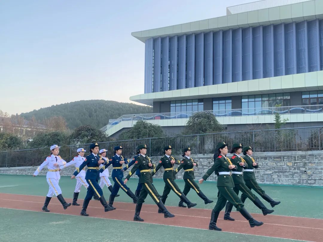初冬晨光里,国旗护卫队迈着铿锵正步护送五星红旗入场。《义勇军进行曲》奏响时,师生肃立,目视五星红旗缓缓升起。那一抹鲜艳的红,既是药学人“为生命守护、为健康护航”的信仰灯塔,更是新时代青年“请党放心、强国有我”的无声承诺。