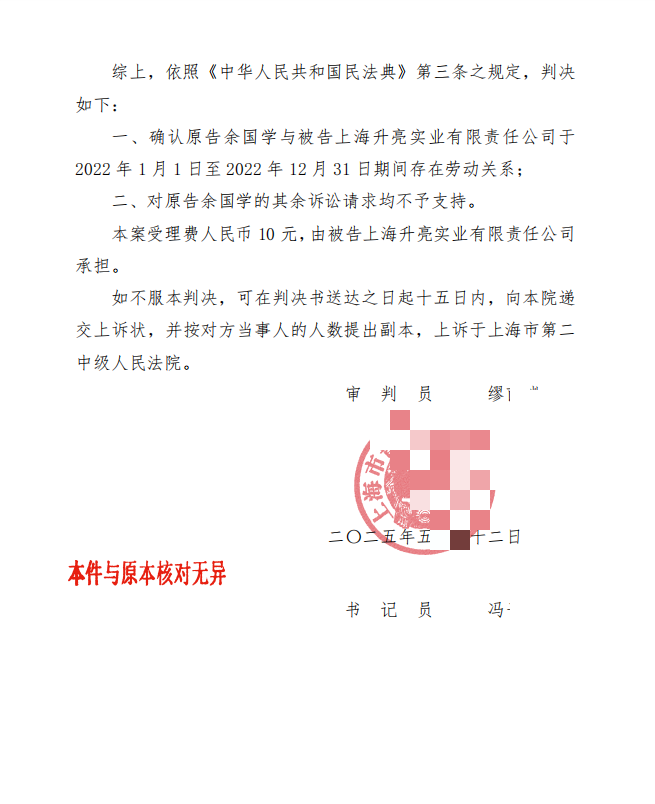 不服一审判决的余先生提起上诉,向上海市第二中级人民法院补充提交了文化活动中心原安保队长的聊天记录、相关财务报表线索等证据,并申请法院调查取证,但未获批准。二审法院最终将劳动关系确认期间延长至 2020 年 3 月 1 日至 2022 年 12 月 31 日,仍驳回了其他诉讼请求。维权过程中,还出现了二审庭审时委托律师未出庭、关键证据未能依法调取等情况,给余先生的维权之路增添了更多阻碍。