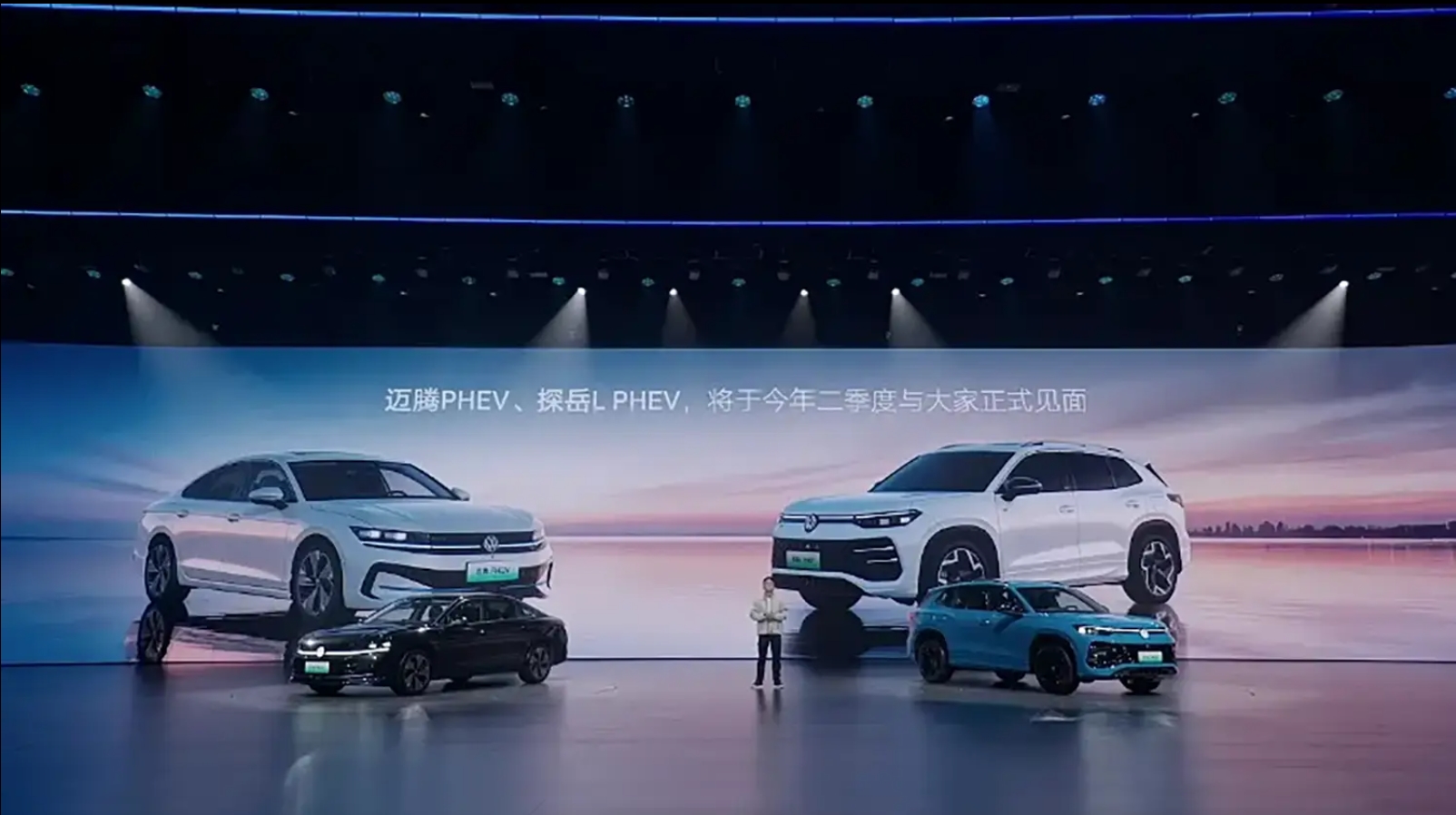 另外两款发布的车型为混动车型,分别为迈腾PHEV和探岳L PHEV,将于今年第二季度上市。迈腾PHEV延续迈腾燃油版设计,在前格栅、下包围等细节处加入蓝色饰条与PHEV专属标识,彰显新能源车属性。