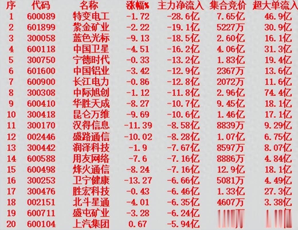 尾盘30分钟,主力资金大幅卖出的名单汇总: