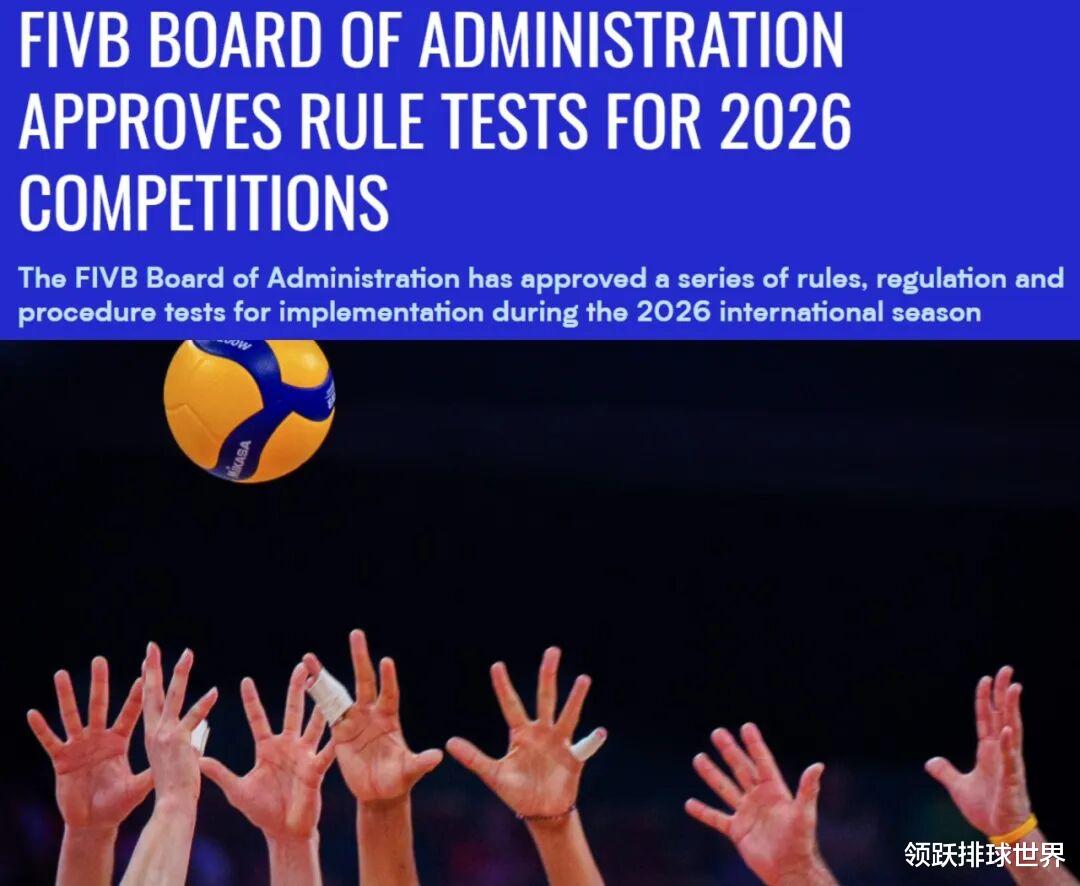 国际排联理事会近日正式宣布批准了一系列规则、条例及程序测试方案,这些新规将于2026年国际赛季期间试行,相关实施将应用于2026年VNL世联赛、U17世界锦标赛以及2026年各大洲锦标赛,所有涉及《官方排球规则》的修改,都将在测试阶段接受全面评估与审查。