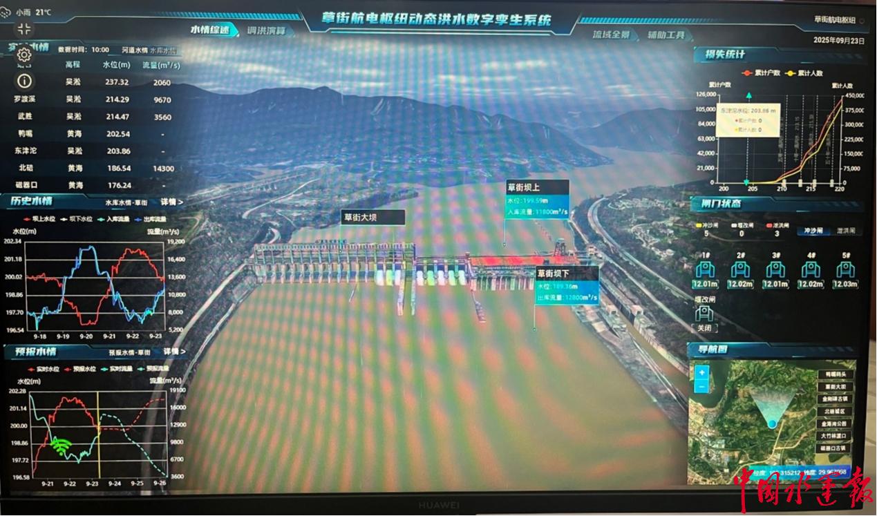 洪峰过境时,数字孪生系统预警精准,枢纽泄洪闸门根据实时数据智能调节流量。洪峰过境后,拦储尾洪大大减少了对下游地区淹没损失。最终,超保证水位的洪峰安然穿越合川城区,未引发险情。“数字预判+水库联调”的双擎驱动效果显著。