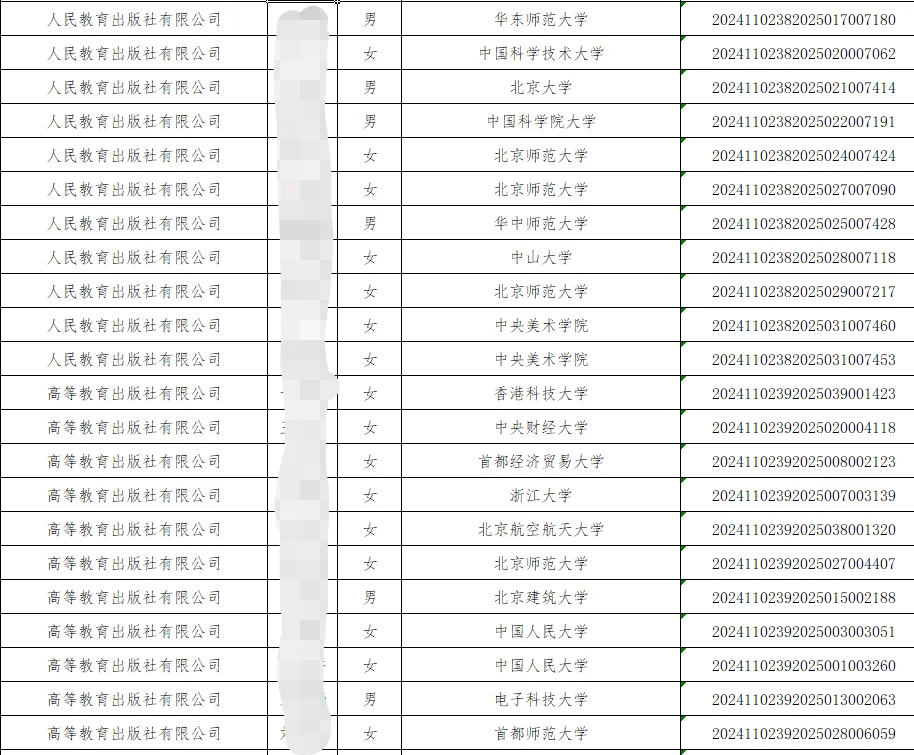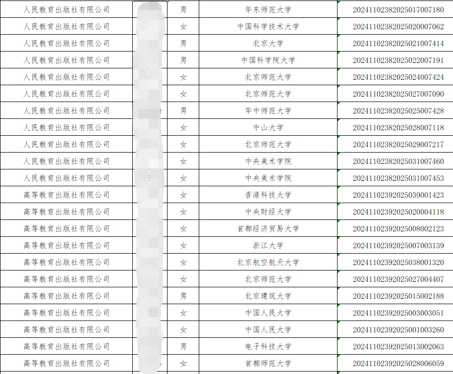 ✅教育B直属企业人教社、高教社等头部出版社录取名单已经公示。 ✌人教社高教社每年招聘时间非常早,秋招10月份左右就开始了,经过多轮笔试面试环节,最终结果出炉。 ✅从名单上看以文科头部学校为主,北大、人大、中传,除此之外留学生同学也是占据很大一个比例,留学生同学可以重点关注此单位的招聘情况。