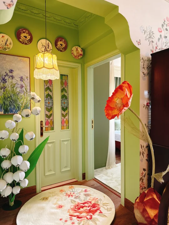 哈哈哈[害羞R][害羞R][害羞R] 我把原来的绿色墙纸和绿色顶面全部改成了白色[萌萌哒R] 加了绿色的沙发柜子门和粉色的地毯~ 整个就是淡淡的小森林的氛围[萌萌哒R][萌萌哒R][萌萌哒R] 超级治愈🌿