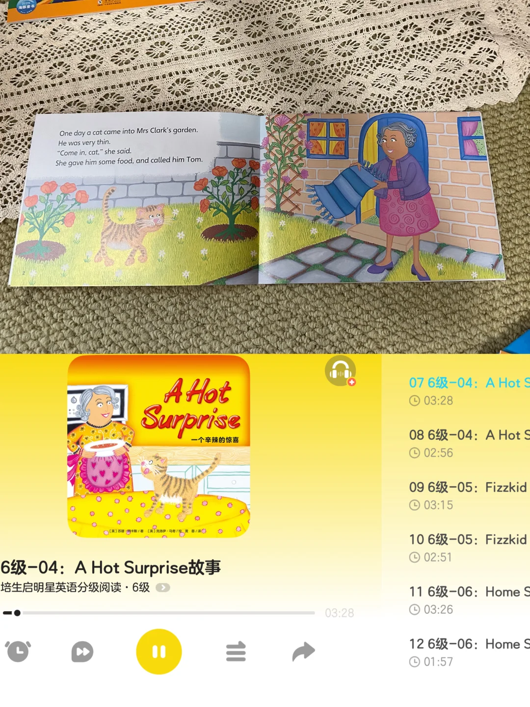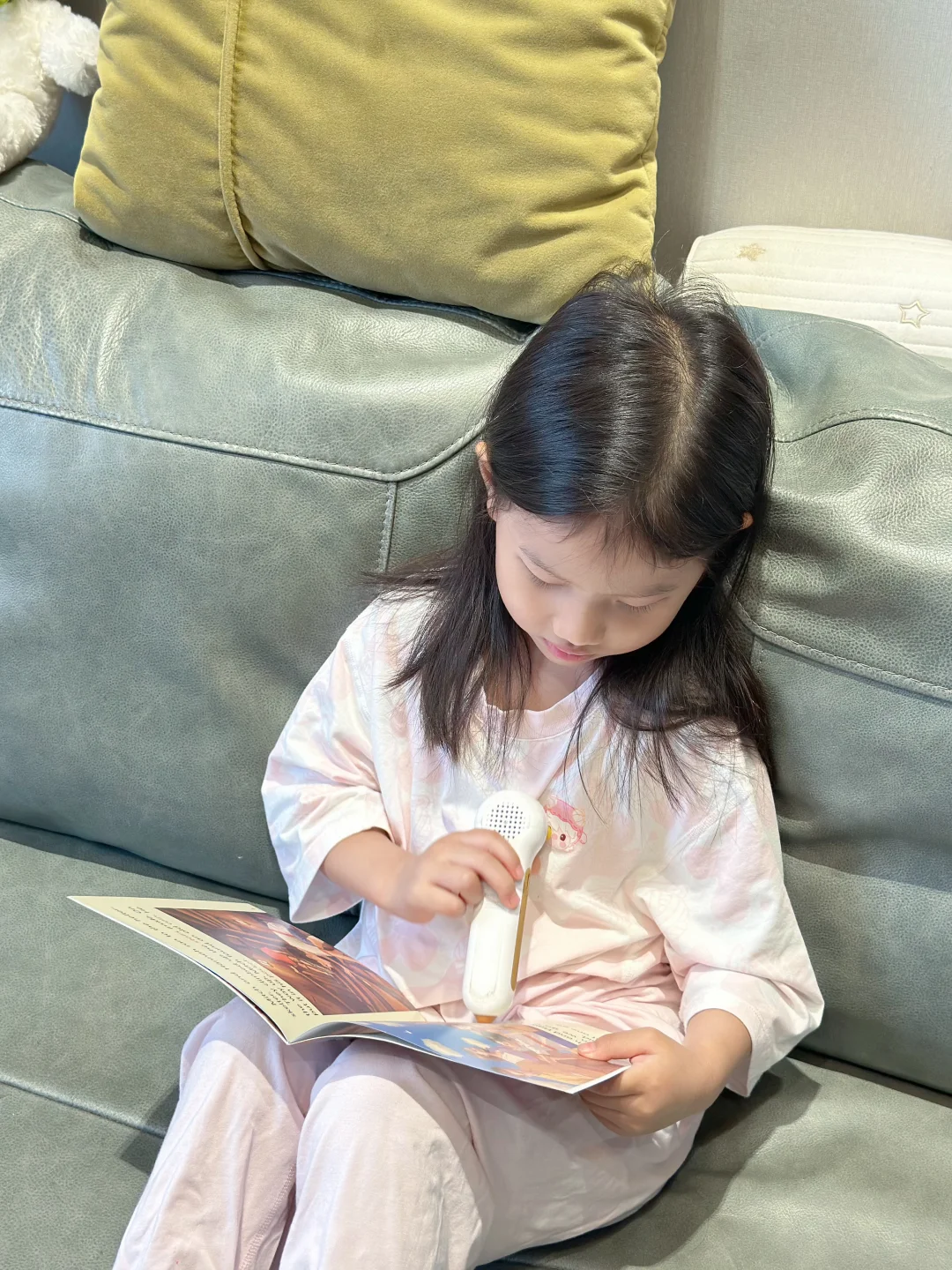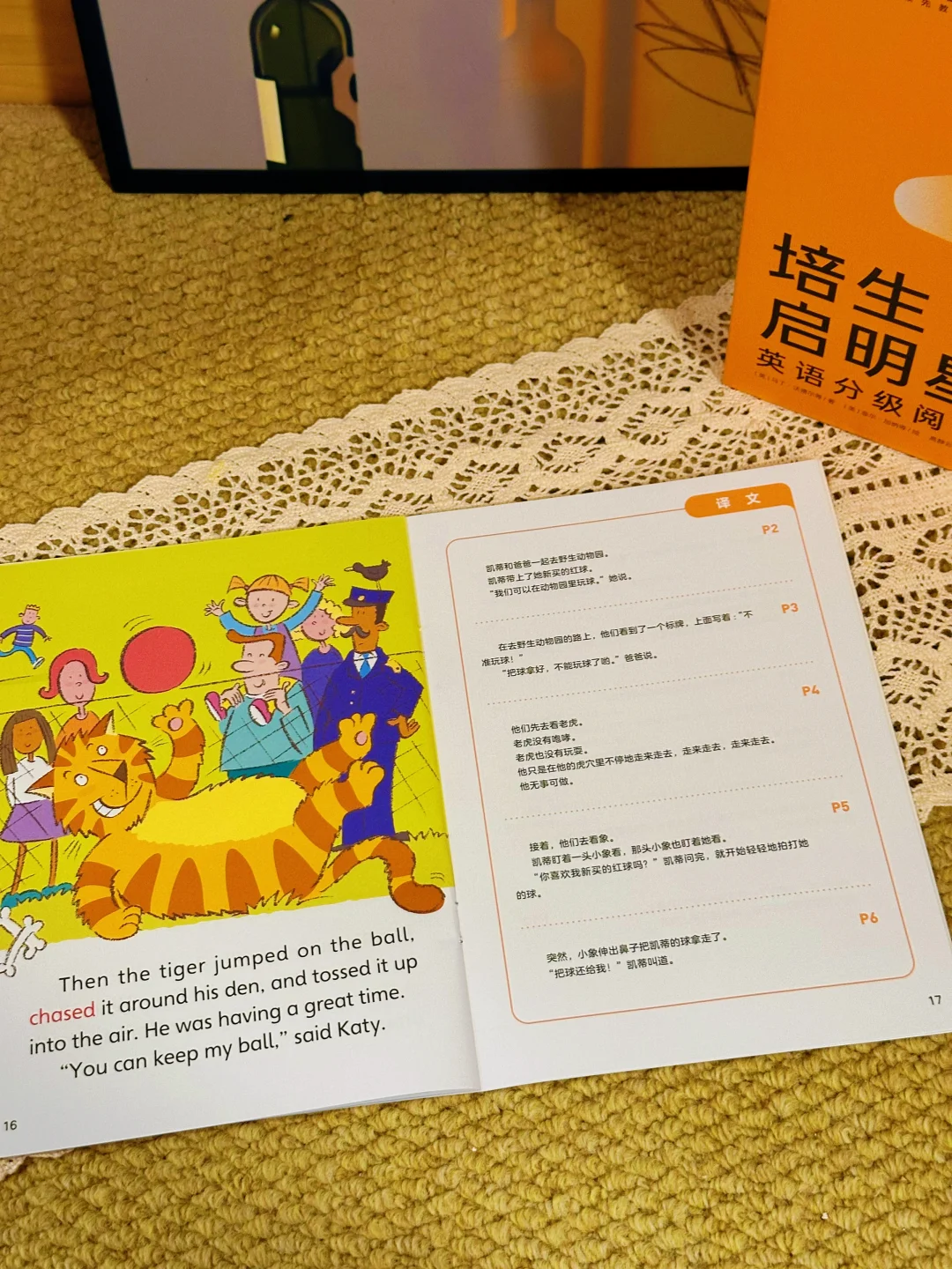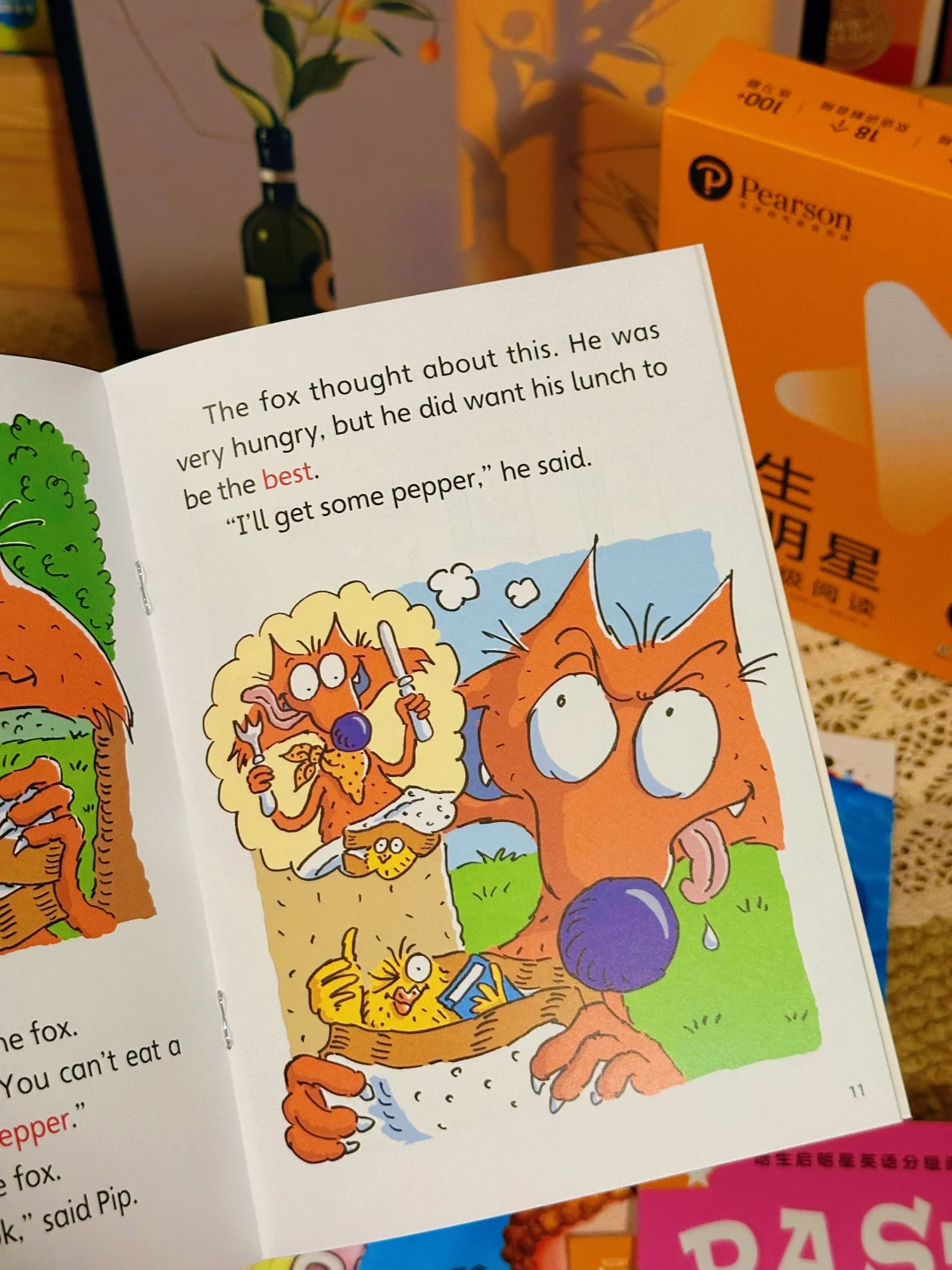 结果她说:“I like the big dinosaur in my storybook! It's strong and tall!”