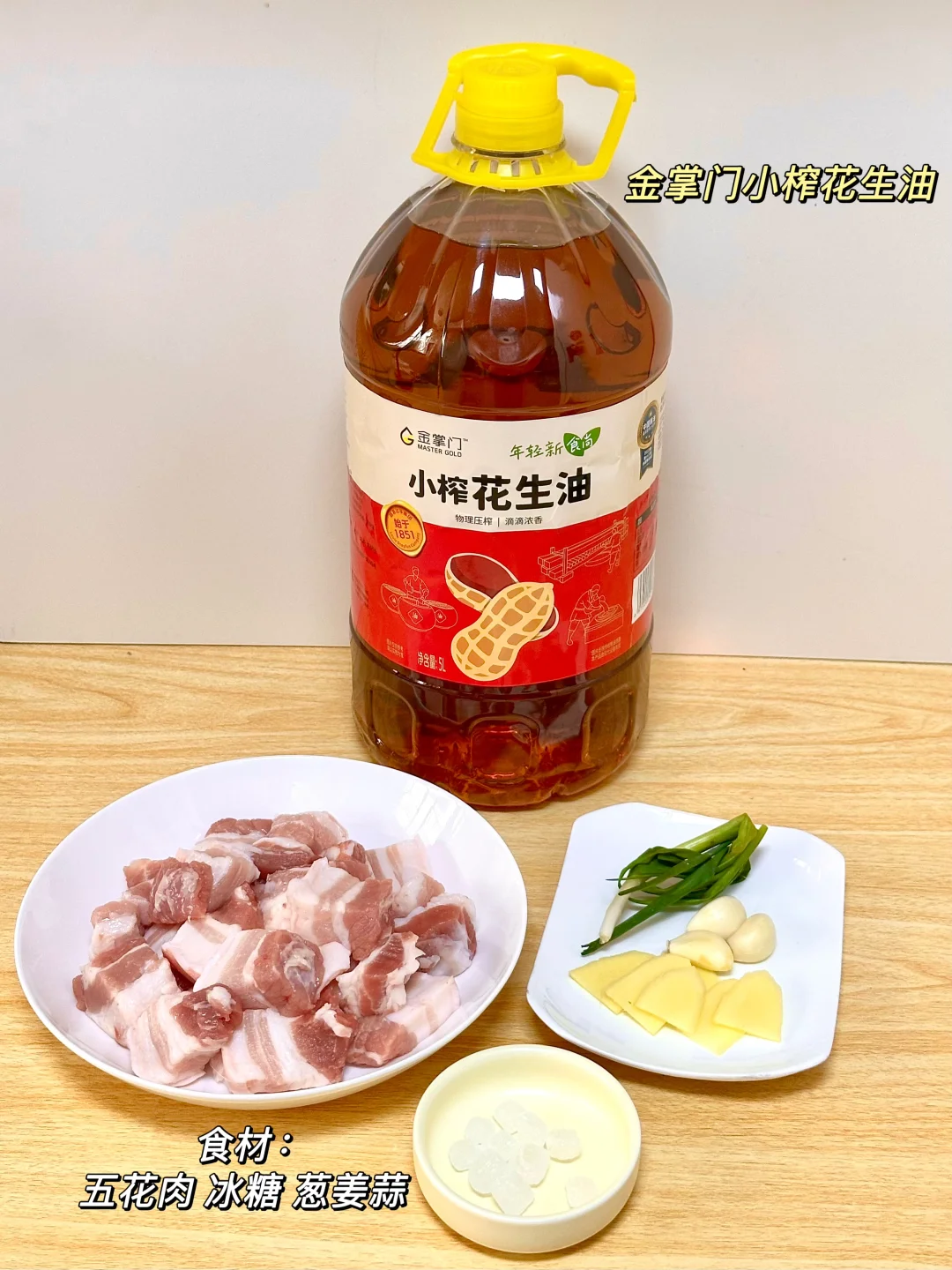 食材:五花肉 葱姜蒜 冰糖 金掌门小榨花生油