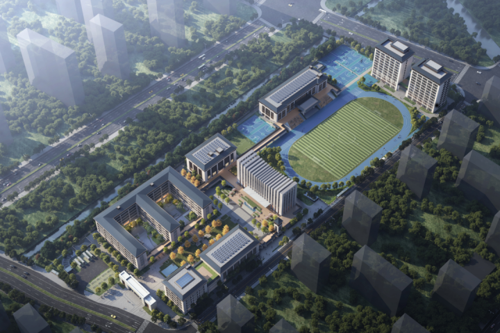 该项目总用地面积104.82亩,总建筑面积约10.40万平方米,总投资约9.08亿元,按浙江省《寄宿制普通高级中学建设标准》,规划建设36班,并预留24班普通高中,每班50人。