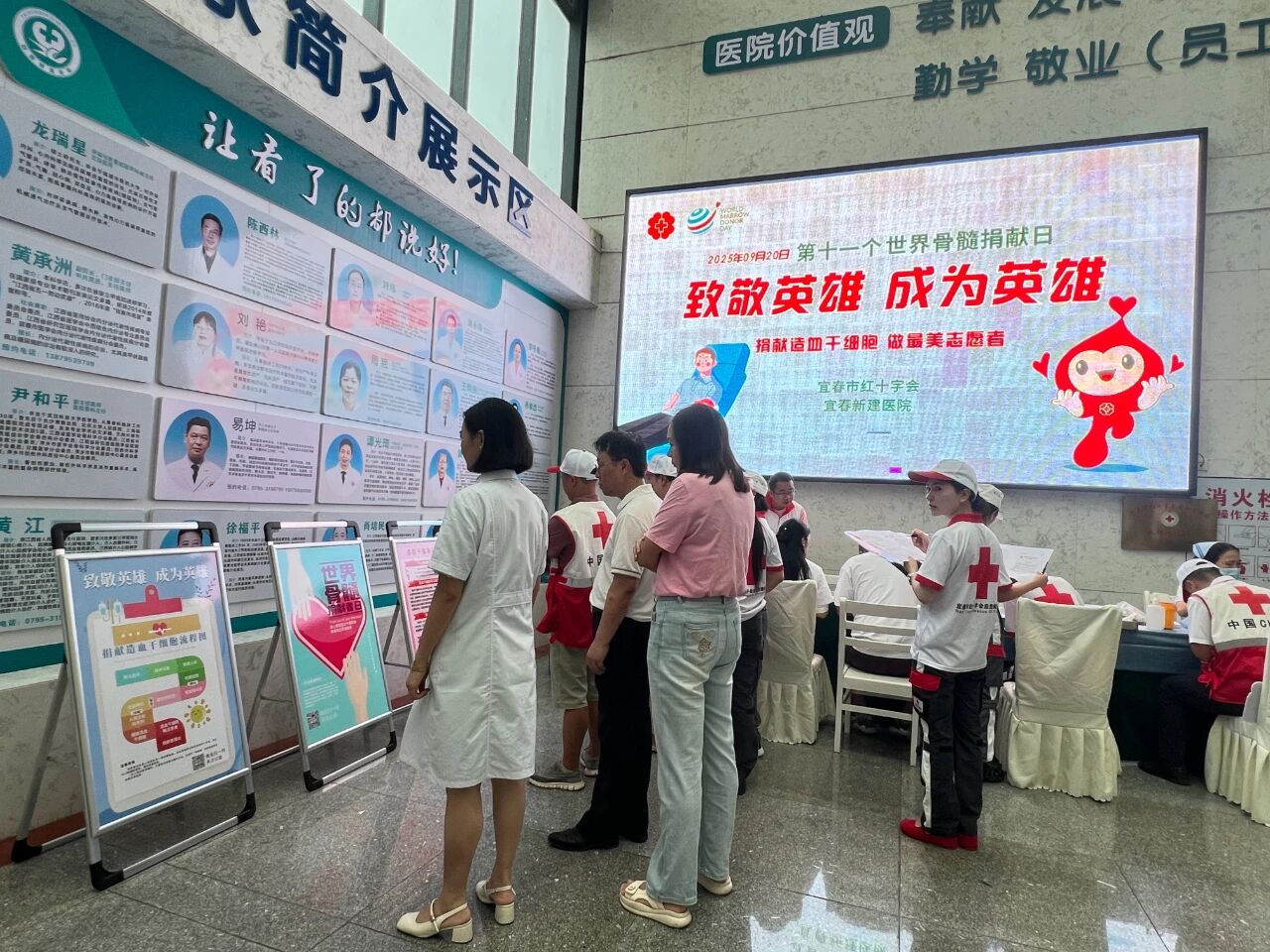 今年9月20日是第十一个“世界骨髓捐献者日”,宜春市红十字会联合宜春新建医院开展了一场“致敬英雄,成为英雄”主题宣传及造血干细胞志愿者招募活动。该活动旨在弘扬“人道、博爱、奉献”的红十字精神,普及无偿献血、造血干细胞捐献和人体器官捐献知识,动员更多社会力量支持并参与“三献”事业。