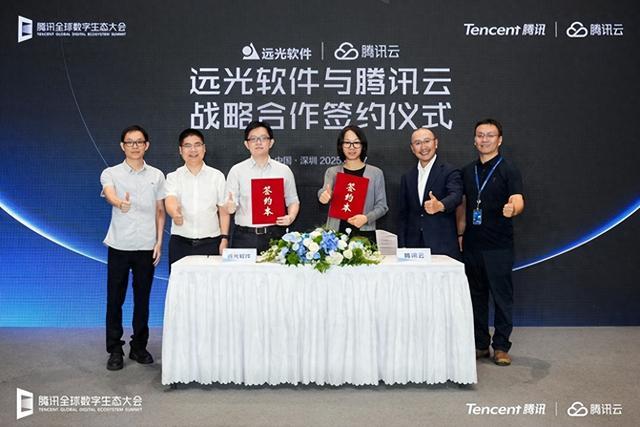 9月17日,在深圳举行的2025腾讯全球数字生态大会期间,远光软件股份有限公司(以下简称“远光软件”)与腾讯云计算(北京)有限责任公司(以下简称“腾讯云”)正式签署战略合作协议。双方将围绕人工智能、云计算等前沿技术,以及智慧企业管理、智能研发等应用领域深化合作,共同推进能源电力等重点行业及央国企的数智化转型升级。腾讯云副总裁张果、远光软件高级副总裁向万红等双方代表出席签约仪式。