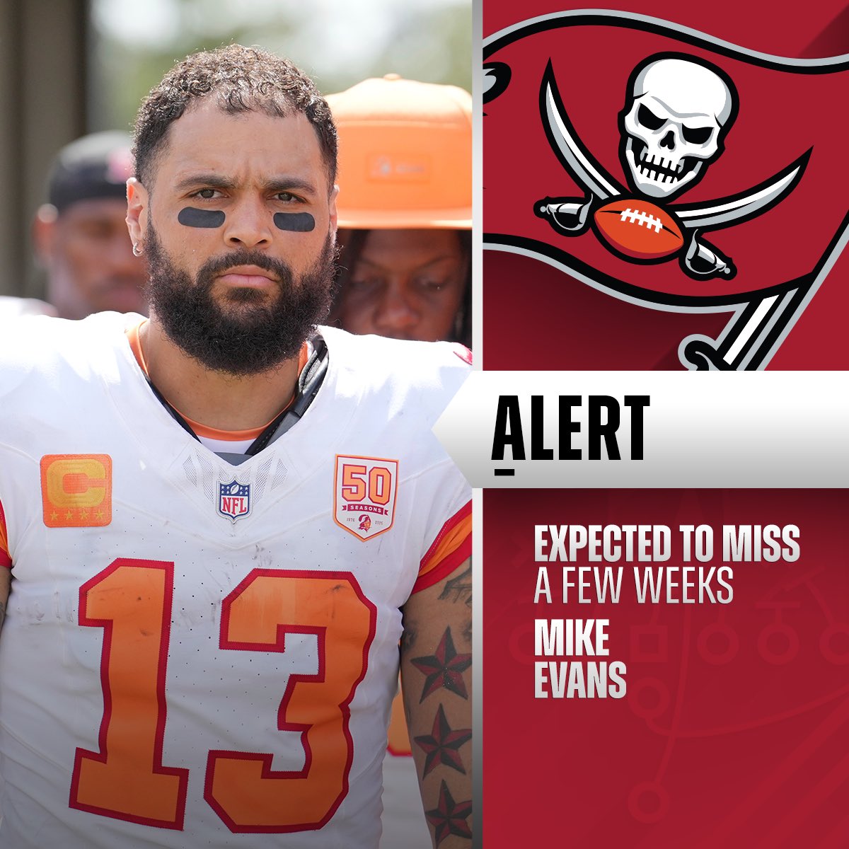 记者NFL官方X账号发布推文称,海盗队外接手迈克-埃文斯因腿筋伤势预计将缺席数周。(消息源自@rapsheet、@tompelissero、@mikegarafolo)