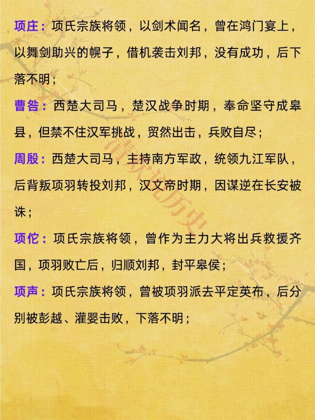 🌈 项羽麾下十大猛将结局一览! ✅项羽是古代排得上号的一大猛将,力能扛鼎,勇猛无双,而他手下也同样是猛将如云,有龙且、英布、季布等骁勇善战的大将,论质量,完全不输刘邦那方的将领; 🔥作为失败的一方,项羽这边的猛将,后来有一大半都归顺了刘邦,其中结局zui好的当属季布,在项羽败亡后,他选择归顺了汉朝,历经高祖、惠帝、文帝三朝,官至河东郡守,得以善终。