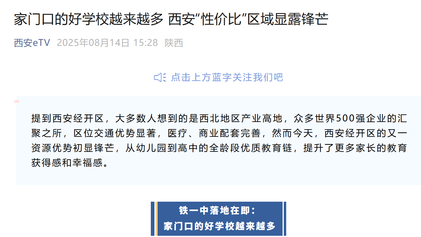 2025年8月,西安教育电视台发布了一则关于西安经开区教育布局的新闻。