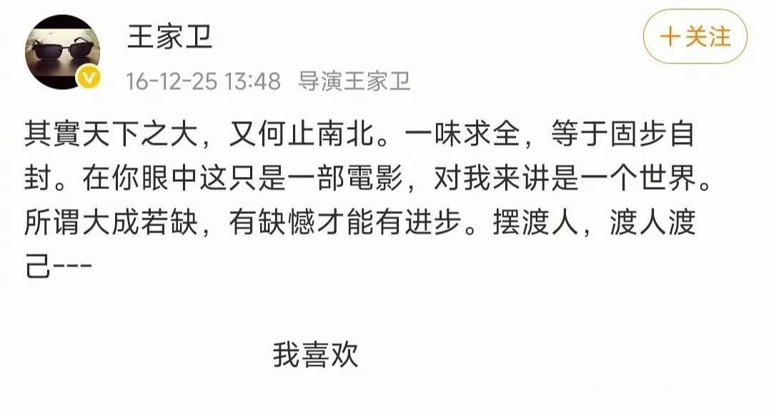 王家卫《繁花》编剧事件还在发酵,虽然剧组发了声明,但似乎并没有打消观众疑虑。 不过,我倒想起了另一件事,那是发生在2016年。王家卫和张嘉佳合作的电影《摆渡人》上映后,网上一片差评,王家卫亲自发文维护,几乎大半个娱乐圈的明星评论区附和。 这时候,唯独王传君不惯着,直接发文称自己不喜欢,那时候,还被推上过热搜。王传君的特立独行像是打了那些明星的脸,因为《摆渡人》确实是烂片,豆瓣口碑仅有4.1分,某些明星不考虑观众一味捧臭脚,确实尴尬。 后来,王家卫拍摄《繁花》用了娱乐圈几乎所有上海籍演员,唯独没有王传君这个上海人,也许是没有合适角色,又或许是耿耿于怀。 现如今,王家卫编剧风波发酵时,再回头看看那时候王传君的孤军奋战,也许能够品出些什么来。#秋日生活打卡季#