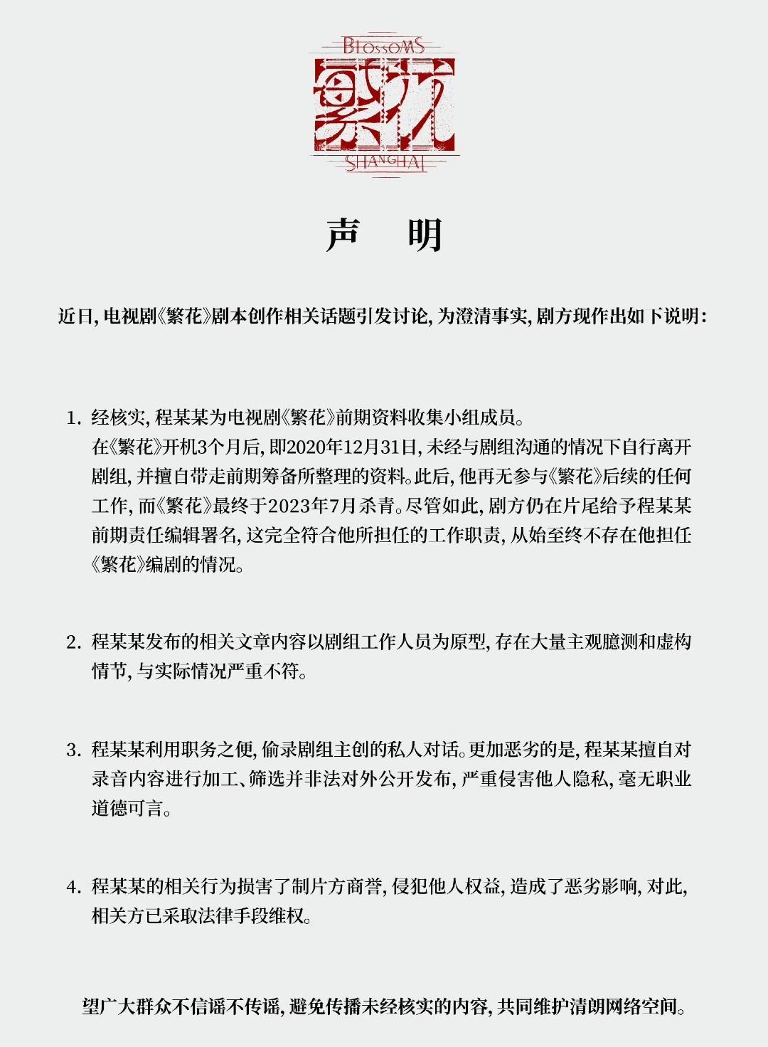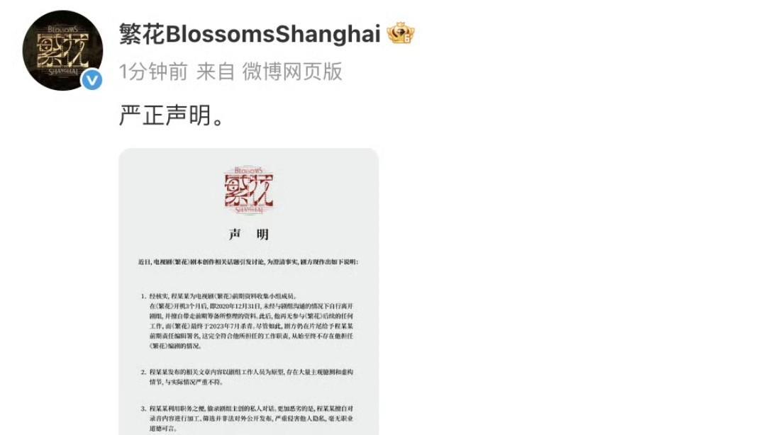 王家卫《繁花》编剧事件还在发酵,虽然剧组发了声明,但似乎并没有打消观众疑虑。 不