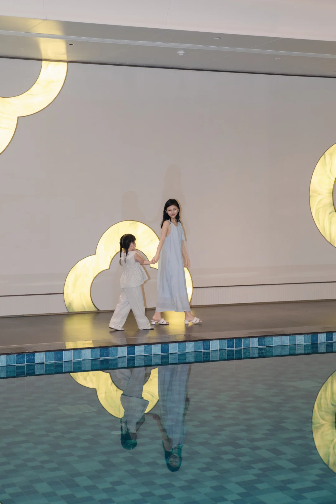 会所里更惊喜,恒温泳池水质清透,娃把小脚探进水里玩耍嬉戏,我坐在池边静静陪着,阳光洒在水面上,满是细碎的幸福感;旁边的书吧摆着满满绘本,娃乖乖坐那儿读故事时,我去隔壁健身区练会儿瑜伽,带娃、自我充电两不耽误~