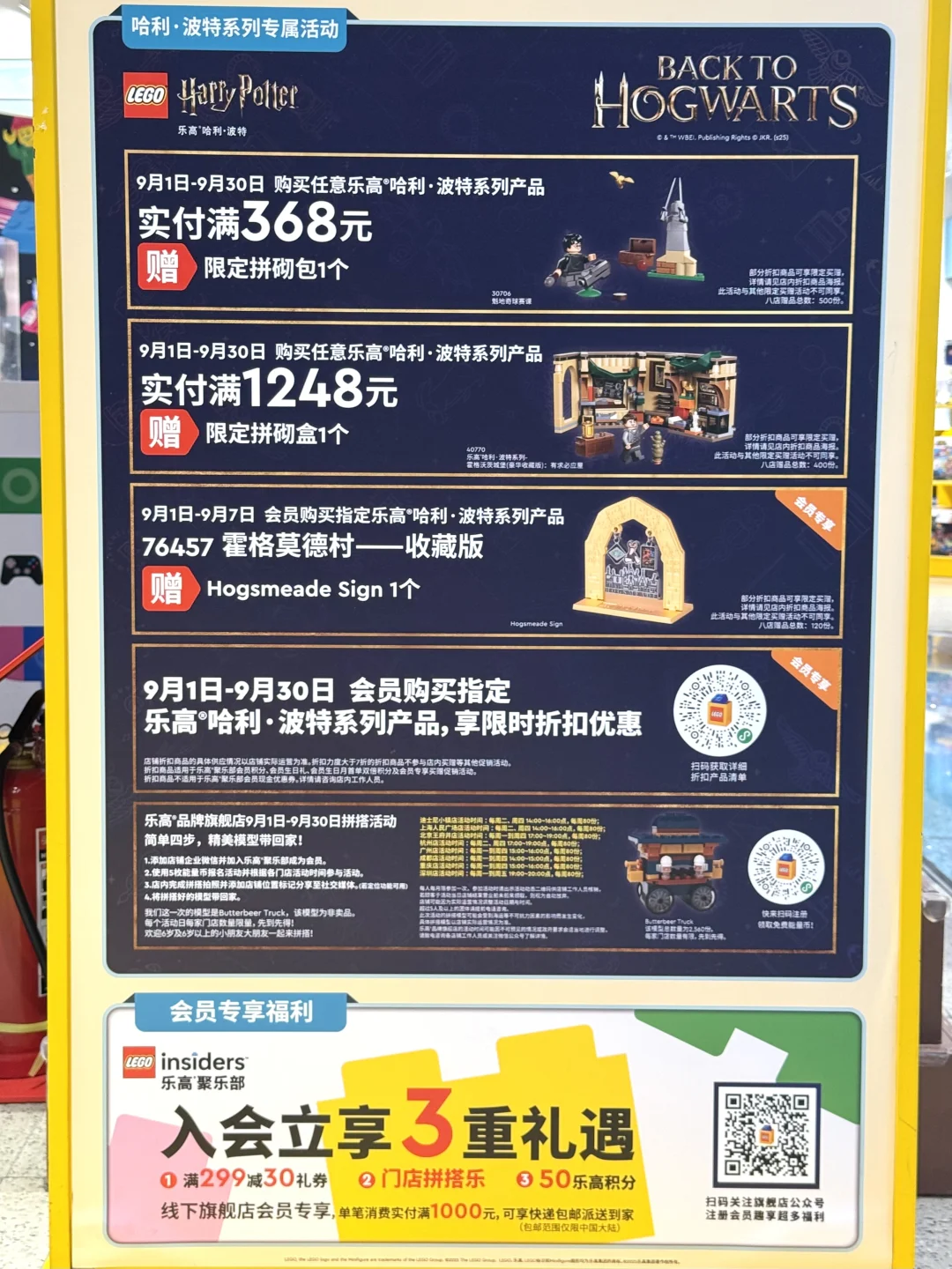购买哈利波特系列的乐高也有🎁!满368送拼砌包、1248送拼砌盒,要是入手霍格莫德村,还能拿到HogsmeadeSign,对我这种乐高和哈利波特双粉来说,简直是双倍暴击的心动💓!