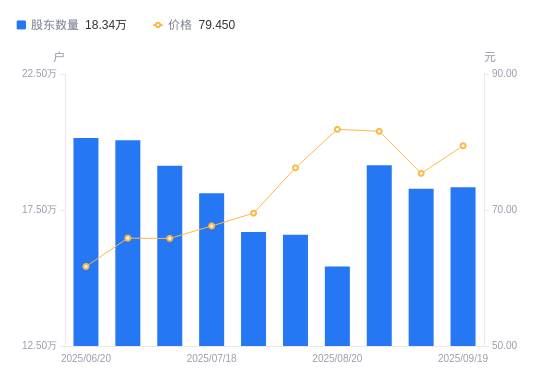 日期A股户数(户)流通A股户均持股数(股)户均持股市值(万元)2025-09-191833964631.6436.802025-09-101828064646.5935.032025-08-291914654436.4436.192025-08-201541935508.8445.102025-08-081658695121.0539.022025-07-311669135089.0235.392025-07-181811174689.9231.732025-07-101913094440.0629.222025-06-302006304233.7827.882025-06-202015124215.2526.00