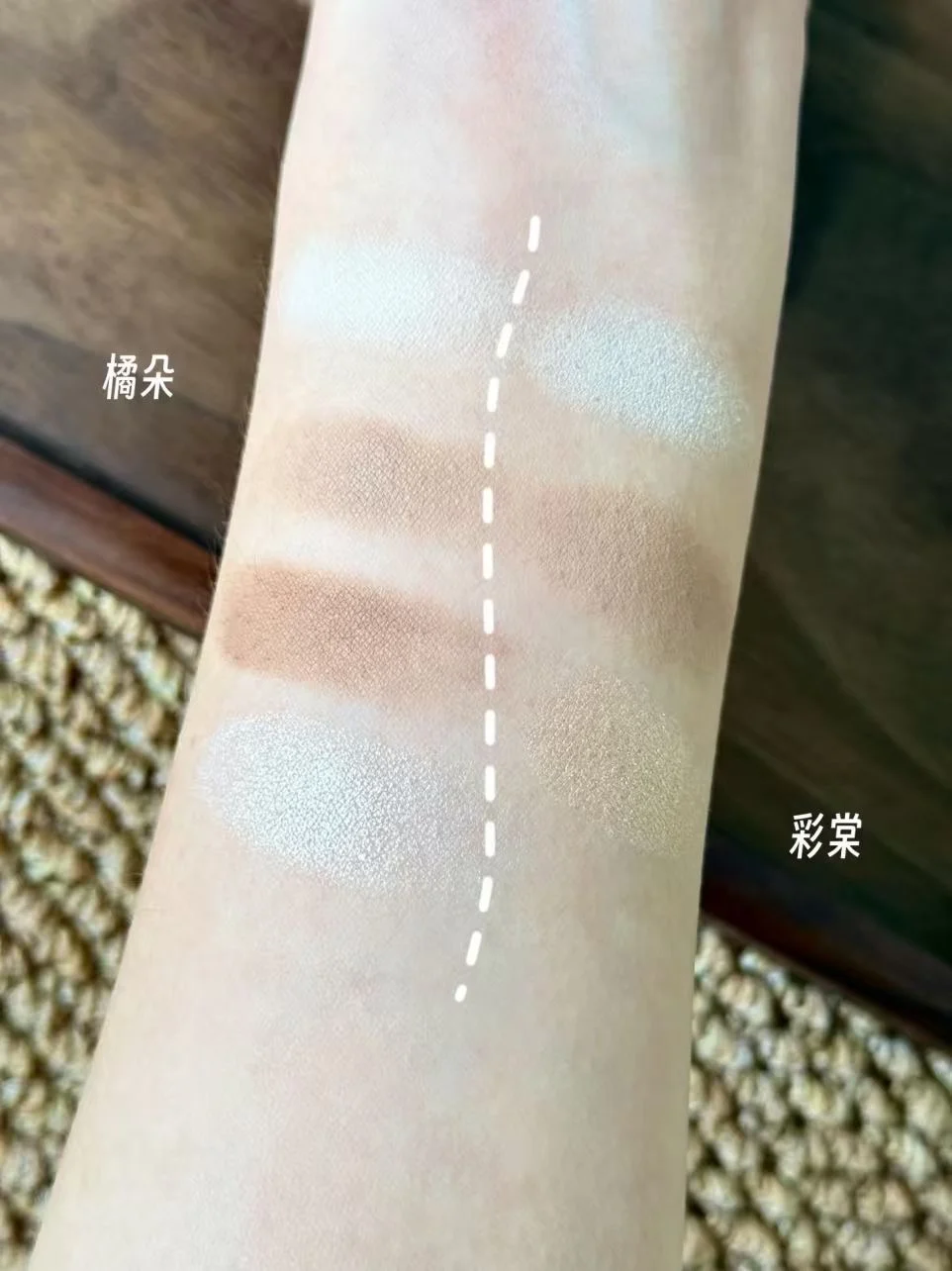 高光色是一个哑光一个珠光,哑光高光是暖调米白色的,大面积用也不会厚重假白,不会显毛孔的。
