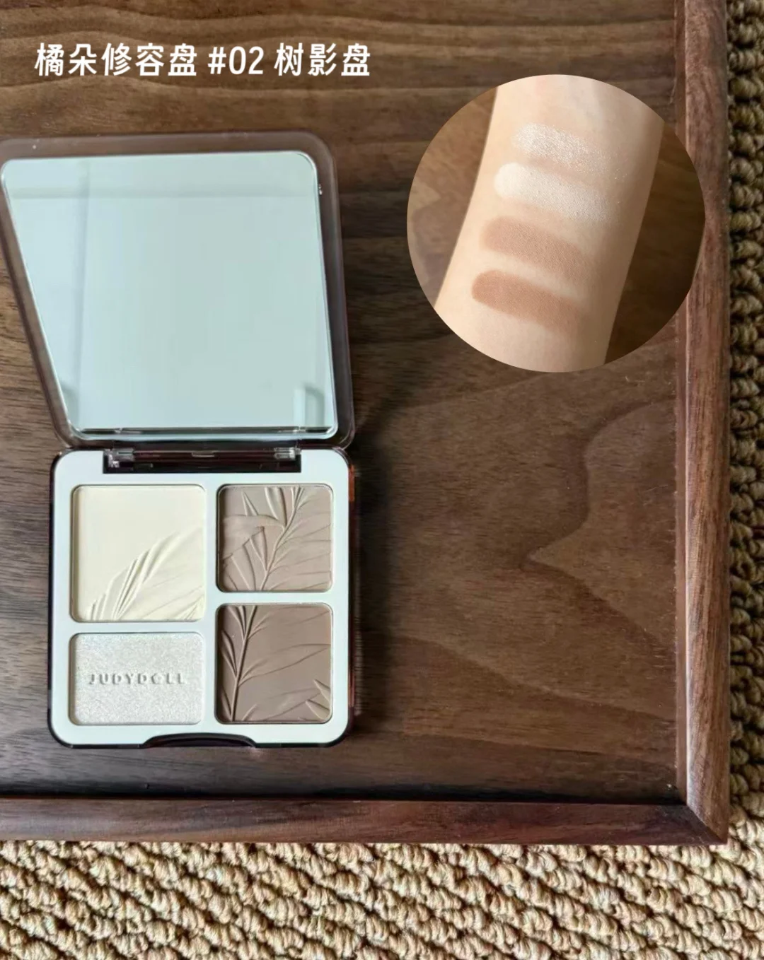 一盘四个颜色,每个颜色都很实用。一深一浅两个修容色,都是不会发红不显脏的灰棕色,画出来的阴影立体又自然。还可以混合用,自己调色控制深浅,感觉淡妆浓妆都能用。