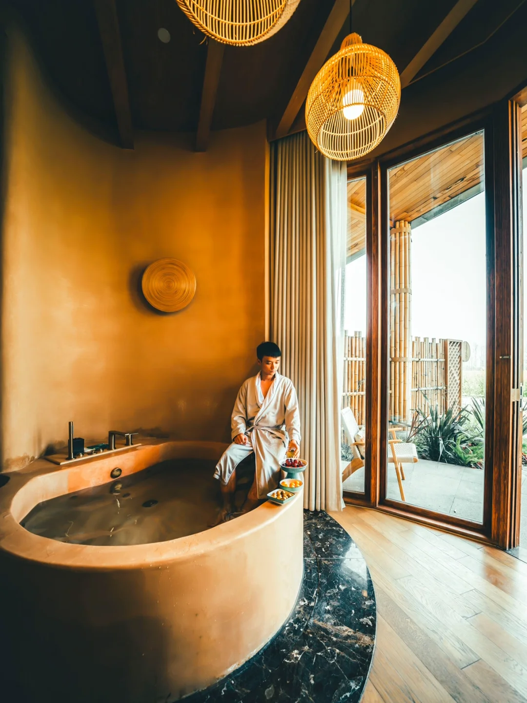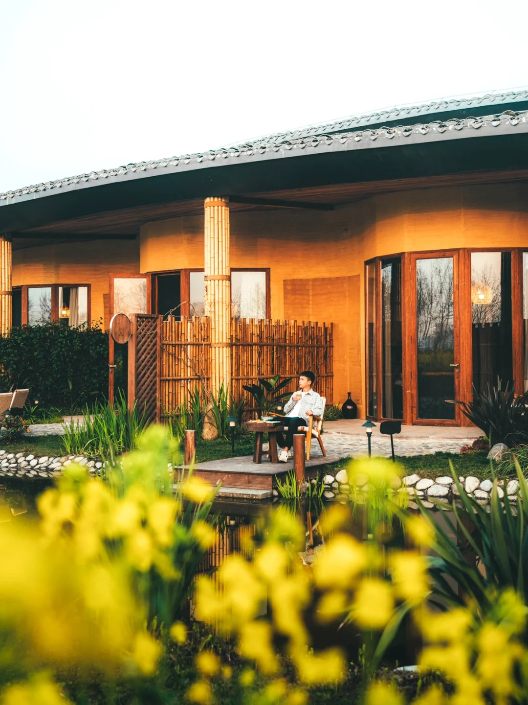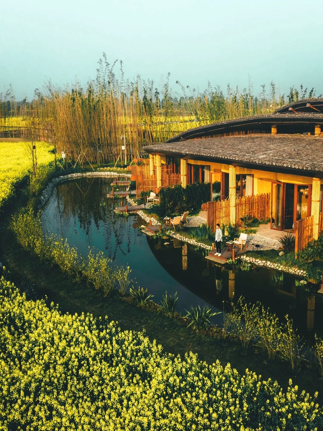 🌾酒店建在15000亩的稻乡渔歌景区里,被田园、花海包围,这里有如画的风景,不论从空中俯瞰,还是从内部观察,这是一座民宿,更是一座艺术品。