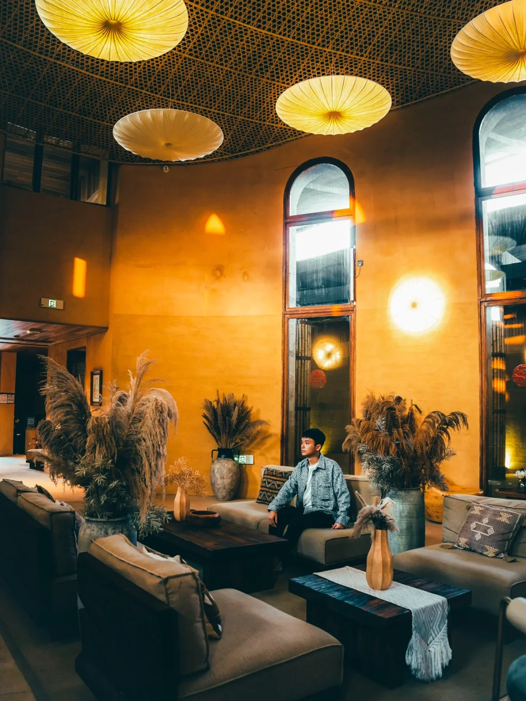 🌾大地之眼民宿从“稻乡”二字需求灵感,呈现出了专属田园大地的曲线之美。民宿内多用很多线条型干花作为装饰增加了整体的视觉感受,有一间土耳其风格的吧台花瓶的现状,往上延伸,是全用竹编吊顶,很有特色犹如广袤土地上生长起来的一粒稻米,寓意“发现万亩良田美景的双眼”。与环境融为一体,使人们去感受自然的存在。这不仅仅是一间住宿酒店,更是一件非凡的艺术品,步入酒店仿佛在沉浸式感受诗意的田园风光。