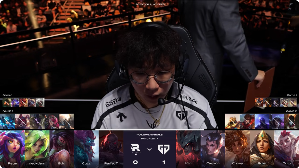 GEN选用:Kiin剑魔、Canyon赵信、Chovy岩雀、Ruler希维尔、Duro洛
