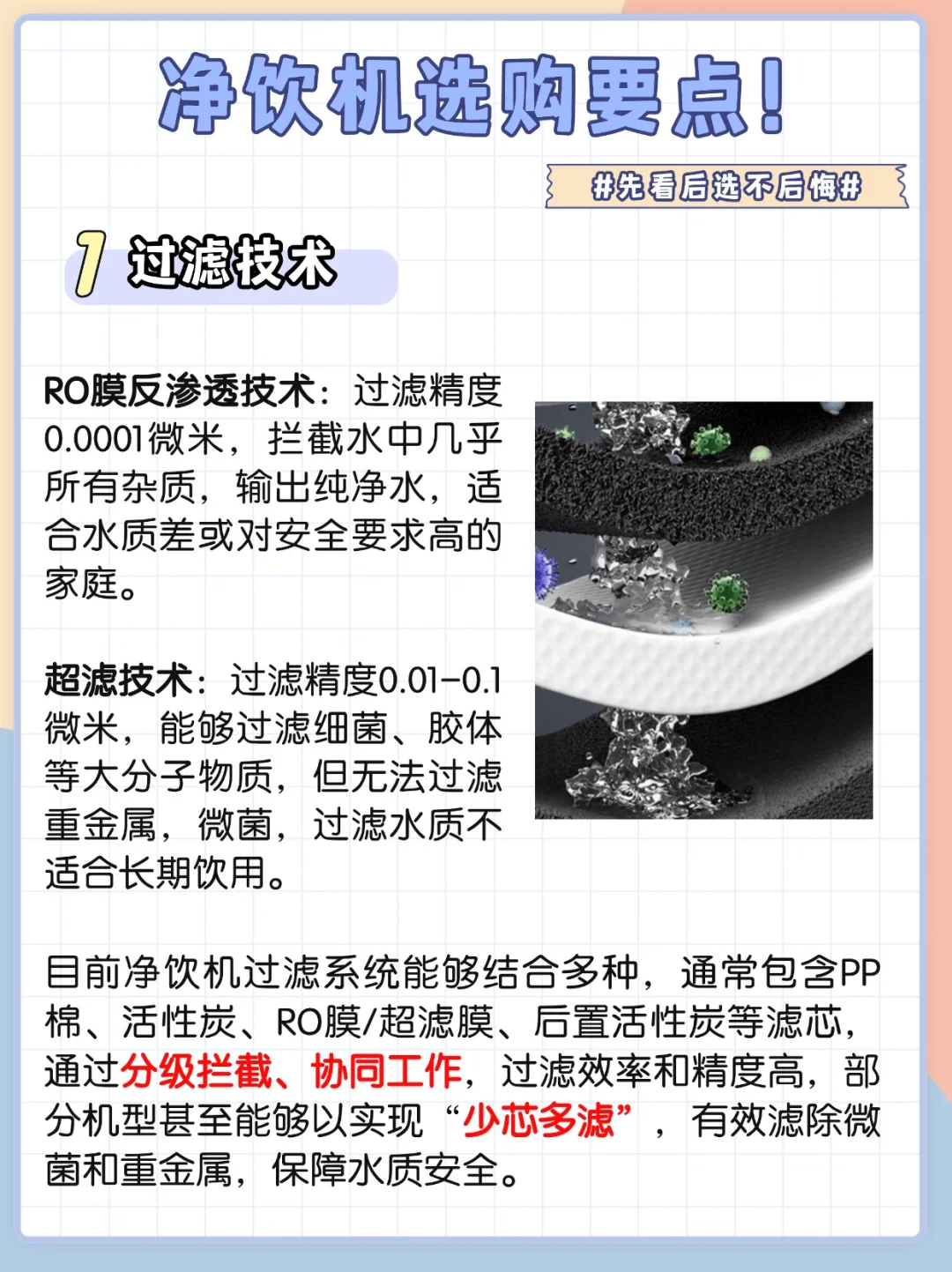 看过滤方式,选带RO反渗透净饮机,更适合长期饮用