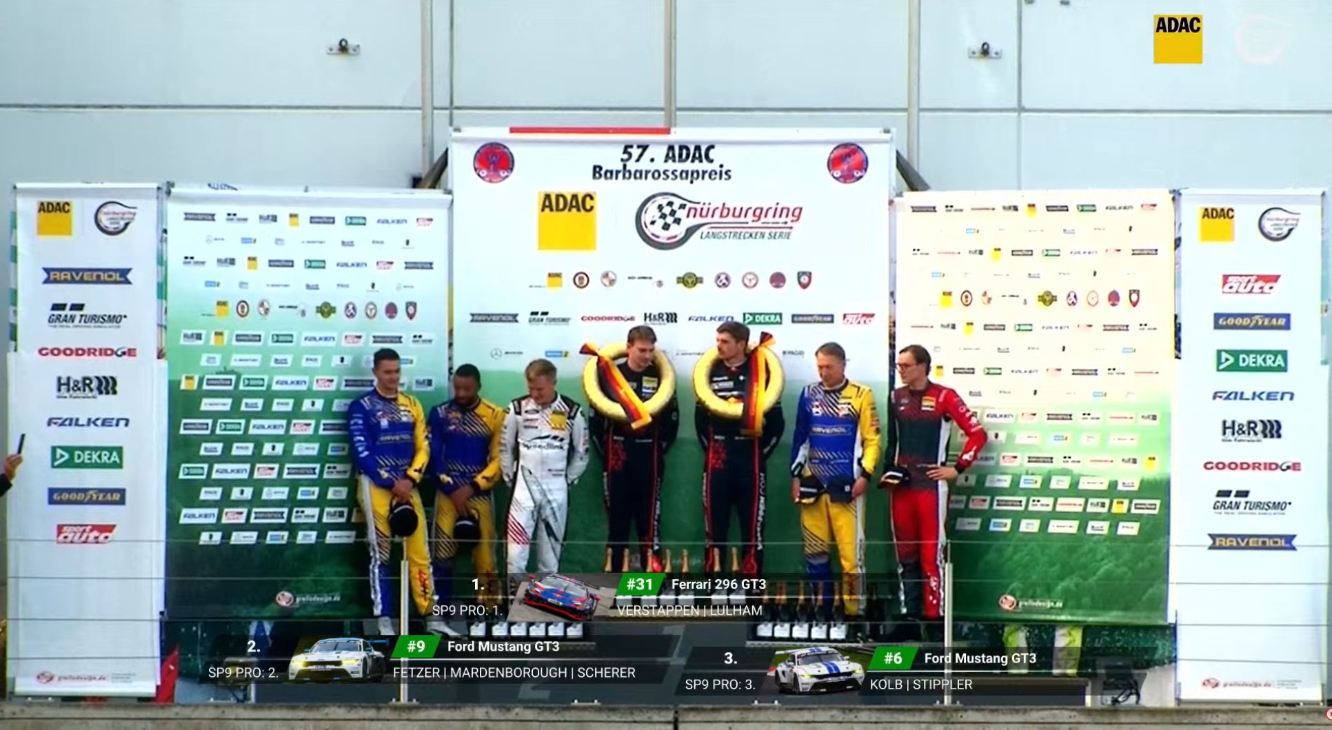 前半程结束在把赛车交给队友的时候,维斯塔潘建立了超过1分钟的优势(1分05秒),最终队友驾驶法拉利296GT3赛车,领先9号福特22秒夺得冠军。