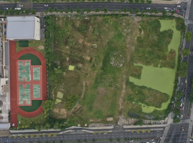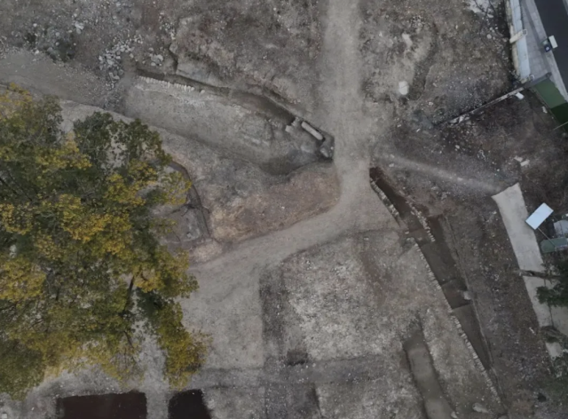 临安衣锦城城墙遗址发掘区进场前航拍(图源:吴越国衣锦城考古遗址公园)