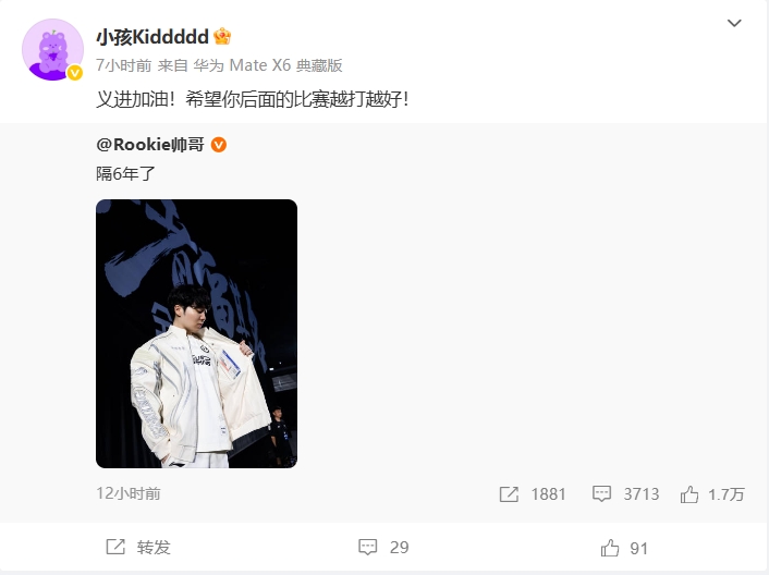 Kid曾与Rookie担任多年iG队友,他们曾一起杀入S5世界赛,最终成绩16强。