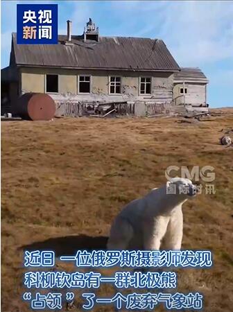 近日,俄罗斯摄影师瓦季姆·马霍罗夫在俄罗斯科柳钦岛的一个废弃气象站发现了数头在此生活的北极熊,随后用无人机拍摄了它们的“生活日常”。
