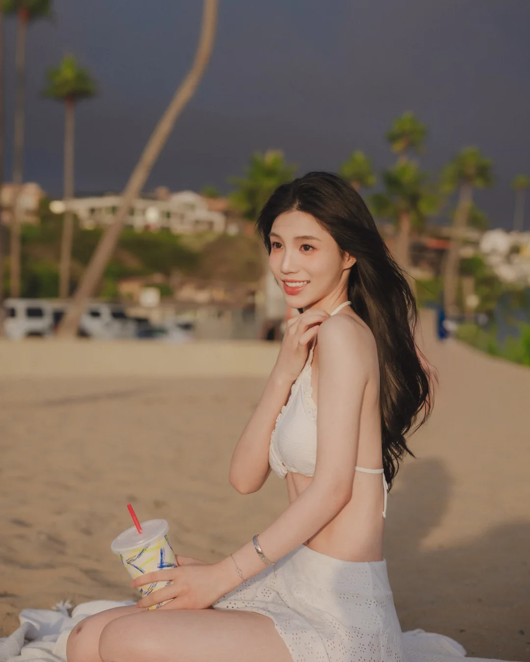 夏日清爽穿搭,黄色饮料配白色短裙,这搭配简直元气爆棚!就说色彩呼应这事儿,夏天