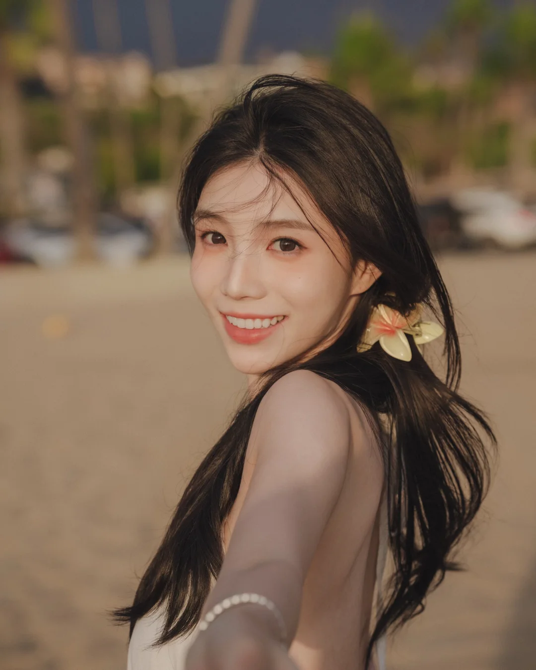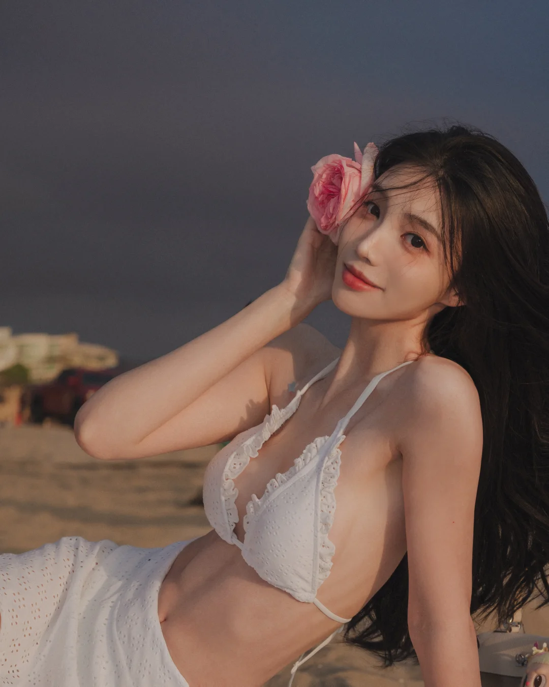 海畔紫光浅紫裙装裹着沙滩的暖意,轻垂的肩带衬得气质舒展,海风掠过发梢时,裙