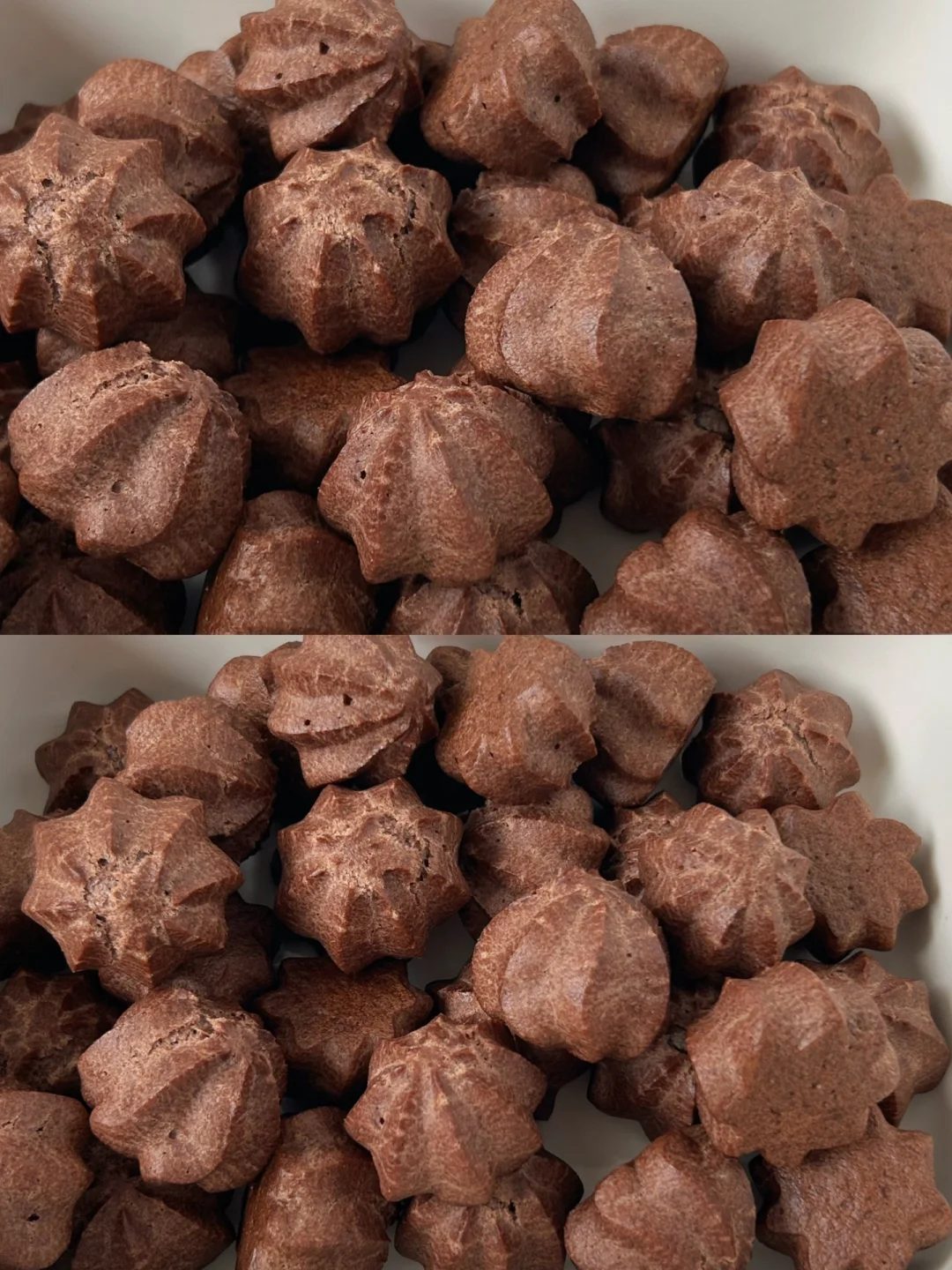 水125g、黄油50g、糖6g、盐1g、低筋面粉55g、可可粉8g、鸡蛋2个
